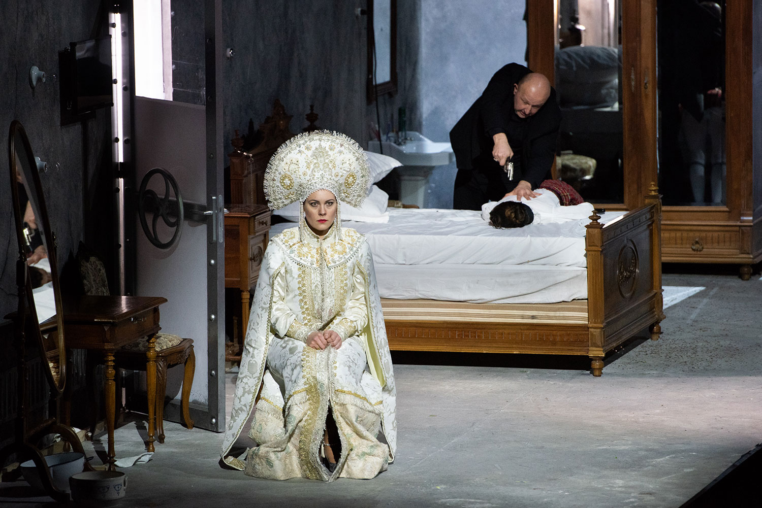 Face à elle, Ksenia Vyaznikova (Princesse Eupraxie Romanovna) joue une jalousie hystérique que seule une technique maîtrisée peut affirmer avec conviction. Charismatique, la mezzo montre une force vocale constante que son mari, le Prince Nikita Kourliatev, incarné par Evez Abdulla, intensifie par l'éloquence de son legato et la séduction de son baryton aux allures héroïques. Migran Agadzhanyan, leurs fils Youri, fort d'une émission claire et d'une voix puissante, offre une évolution de son personnage en deux tours de passe-passe, de la puérilité à la maturité, de l'innocence à un amour familial emphatique (U menja pered Gospodom).