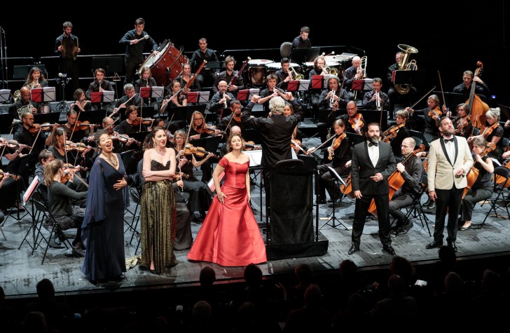 Comme pour toute soirée d'anniversaire, ce sont les grands tubes qui constituent la programmation musicale. Le Barbier de Séville tout d'abord avec l'air de Figaro « Largo al factotum », l'un des rôles phares qui a lancé la carrière du baryton Armando Noguera, retors dans cette cavatine célèbre lui permettant de déployer une robustesse vocale autant qu'une technicité parfaitement aboutie sur l'ensemble de l'ambitus. La Forza del destino (« Pace, pace moi dio ») et Norma (« Casta Diva ») ensuite, avec le sublime soprano agile de Mary Elizabeth Williams apprécié l'année dernière à Lille dans Nabucco, dont les moyens vocaux émerveillent tout comme ses intentions vibrantes. Tosca et l'air « E lucevan le stelle » par la suite, mené d'une main de maître par Florian Laconi, croisé à Metz dans cet ouvrage, fort d'aigus conquérants qu'il réaffirmera dans le duo final (Don Carlo) avec Armando Noguera à ses côtés. Maria Grazia Schiavo révèle toute son élégance sans les difficultés théâtrales du rôle dans l'air « E strano… Sempre libera » (La Triavata) qui lui ont fait défaut à Turin. Enfin, on devine les qualités inverses avec Marie Karall, rencontrée notamment à Saint-Etienne, qui n'hésite pas à s'approprier l'ensemble du plateau pour une Carmen d'un beau tempérament (Habanera et duo final avec Florian Laconi) même si le souffle paraît court (la chanteuse sort tout juste d'une grippe), il est contrebalancé toutefois par un agréable timbre de bronze.