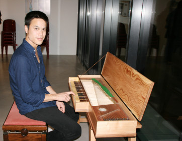 Le lendemain, c'est un moment intime à la nouvelle salle du Panorama de l'office de tourisme, qui offre un splendide point de vue en hauteur sur la façade et le collatéral nord de la cathédrale Sainte-Marie d'Auch, chef-d'œuvre du gothique finissant, de la Renaissance et néoclassique. Jean-Luc Ho propose un récital de clavicorde, cet instrument au son confidentiel à cordes frappées, issu du tympanon médiéval et ancêtre du piano forte.