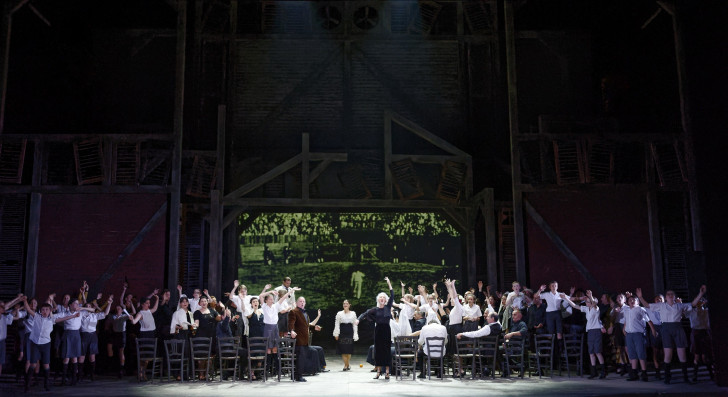 La vulgarité, c'est plutôt du côté masculin qu'on la découvre à l'œuvre dans la mise en scène de Nicola Berloffa. Sa Norma Second Empire nous avait séduit à Nice. Sa Carmen fasciste (importée de Saint-Gall et vue à Rennes en 2017) ne manque pas d'attraits non plus. Sise dans une sorte de grange circonscrite d'un fouillis de persiennes et de portes coulissant autour d'un lointain cyclorama, à même de figurer aussi bien un corps de garde qu'une auberge ou, barrée de bouleaux arrachés à la terre, une zone de transit, cette Carmen, un peu trop sagement éclairée, aux tomber de rideaux un peu prosaïques, est aux antipodes de l'audacieuse expérimentation de Florentine Klepper comme de la folle vision de Barrie Kosky. Mais elle nous parle. Nous parlent ces contrebandiers revus en passeurs mercantiles. Nous parle surtout hélas la veulerie de cette soldatesque en chemise noire ivre de virilité, qui va trouver fil à retordre avec une Carmen obligée d'entrée de jeu de calmer le feu de ce marigot à coups de seau d'eau, pratique en vogue dans les campagnes d'antan sur le pelage en rut de certain « meilleur ami de l'homme ».