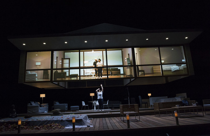 Toute l'action se passe dans le « fiorito asil » de Butterfly, superbe décor de bois à claire-voie dû à Zinovy Margolin, qui montre à la fois ce qui se passe à l'extérieur mais aussi à l'intérieur des pièces de la maison, notamment la cruauté mercantile des préparatifs du mariage arrangé du I, ou encore les réactions d'une Suzuki dévastée au II. Cet impressionnant dispositif, caressé des lumières douces d'Alexander Sivaev, bénéficie en outre d'un « système anti-voyeurs », qui coupe subitement l'accès aux images intérieures, notamment celles des moments-clés (la nuit d'amour, la mort) laissés à l'imagination aiguillonnée et sans frein du spectateur. Délicat. Intelligent. Et bouleversant.