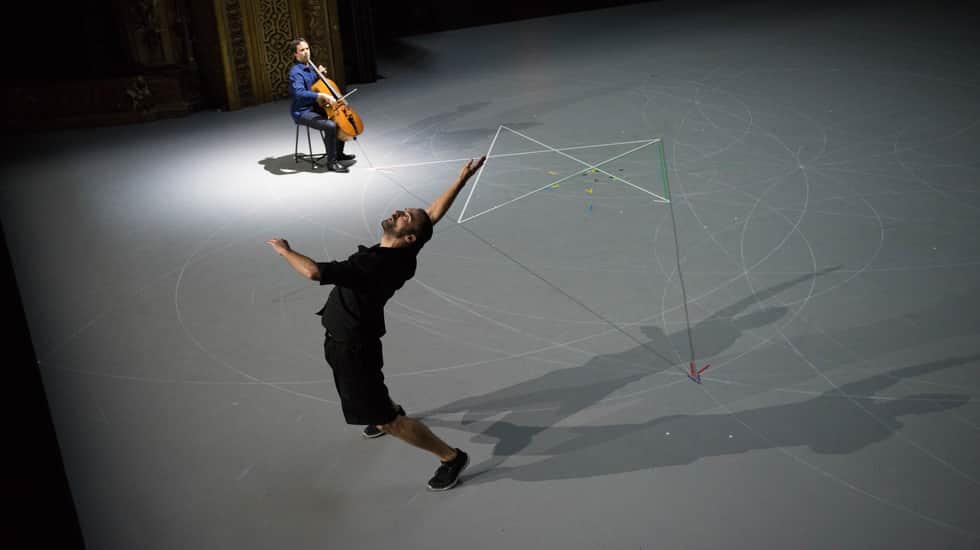 La scène physique, elle-même, prend parfois chez Anne Teresa de Keersmaeker littéralement un aspect géométrique précis comme dans Mozart/Concert Aria's. Un moto de gioia et son parquet de forme circulaire comprenant deux centres et formant une éclipse irrégulière (Laermans et Van Kerkhoven, 1998). Parce qu'Anne Teresa De Keersmaeker travaille sur les analogies structurelles entre musique et danse, il est intéressant de noter, comme le font Rudi Laermans et Marianne Van Kerkhoven dans Violin Phase, le lien avec la structure circulaire de la danse et la composition qui est un rondo.