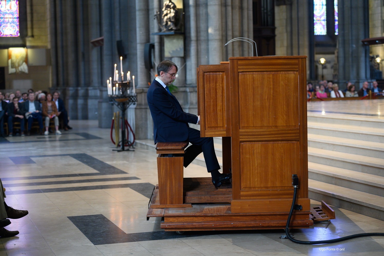 N'ayant pu assister qu'aux concerts du dimanche 16 juin, nous avons néanmoins admiré à nouveau la variété et la diversité esthétique d'une programmation pleine d'ambition. Privé comme on le sait de son instrument de Notre-Dame de Paris pour une durée indéterminée, Olivier Latry touche celui de Notre-Dame de la Treille, un instrument bien connu des mélomanes notamment parisiens puisqu'il s'agit de l'ancien orgue du Studio 104 de la Maison de la radio, racheté pour un euro symbolique puis reconfiguré et remonté dans la cathédrale lilloise. Le Gonzalez n'a pas toujours les jeux les plus séduisants et l'acoustique est, comme presque toujours dans une église, confuse dans les passages les plus rapides. Mais la perplexité nait surtout du choix du programme. Certes Olivier Latry explique dans son propos introductif sa fascination devant la musique en mouvement issue des jeux de transcription entre compositeurs. Mais partir de la transcription pour piano par Franz Liszt de la Fantaisie et fugue BWV 542 pour la transcrire à son tour pour l'orgue revient à substituer à Bach un empilement Bach+Liszt+Latry qui fait juste regretter la perfection de l'original. Et le grand Charles-Marie Widor, auteur de si merveilleuses symphonies pour orgue ne s'est pas grandi encore en défigurant le choral du veilleur. Quant au Prélude et fugue sur Bach de Liszt, il sonne mieux dans la version originale que dans cette transcription « syncrétique » de Jean Guillou. Heureusement, la sublime Passacaille et fugue BWV 582 sonne admirablement, dépouillée de tout oripeau factice. Passionnant sur le papier, admirablement interprété, ce programme ne s'en avère pas moins frustrant à l'audition.