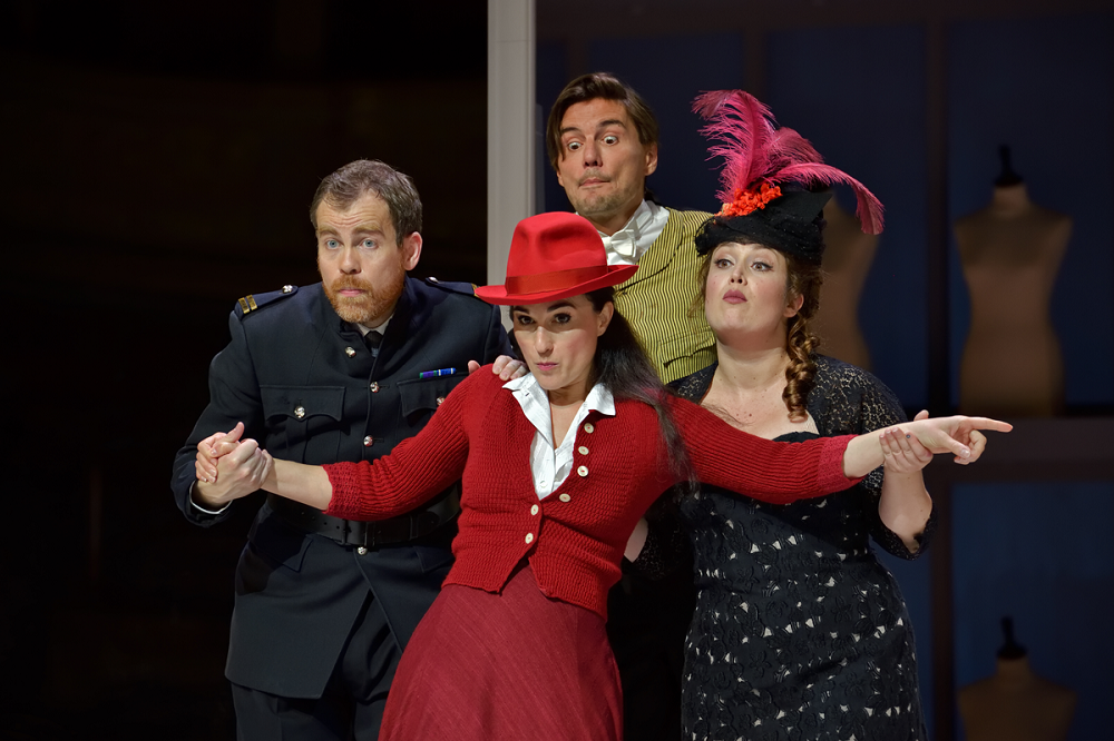 Après le Postillon de Lonjumeau où Michel Fau s'amusait à réinventer un XVIIIe siècle fantasmé par le XIXe, Anne Kessler choisit de transposer l'action de Madame Favart – fameuse actrice du siècle des Lumières qui révolutionna l'art dramatique – au XXème siècle, dans les ateliers de fabrication des costumes de l'Opéra-Comique, soulignant ainsi le rôle prépondérant du travestissement dans cette œuvre aux quiproquos incessants et alambiqués. L'acte I se déroulant à l'auberge de Biscotin, le spectateur est d'emblée perdu entre les indications scéniques de la metteuse en scène et certains dialogues ou actions qui ne trouvent plus sens. La compréhension des personnages et des enjeux s'en trouve amoindrie et on décroche rapidement. Ce travail est par ailleurs truffé de gadgets inutiles (quel est le rôle de l'enfant omniprésent dans cette histoire ?) et de redondances d'effets pour les fins d'actes. Aucune vraie idée n'irrigue ce travail qui défend mal une œuvre qui recèle pourtant beaucoup de pistes de lectures, comme le laissent entrevoir certains dialogues savoureux sur les classes sociales (on pense au Mariage de Figaro) et la place des femmes au XVIIIe siècle. La deuxième partie gomme cette transposition et rend les choses plus lisibles, et reconnaissons que décors et costumes sont très réussis.