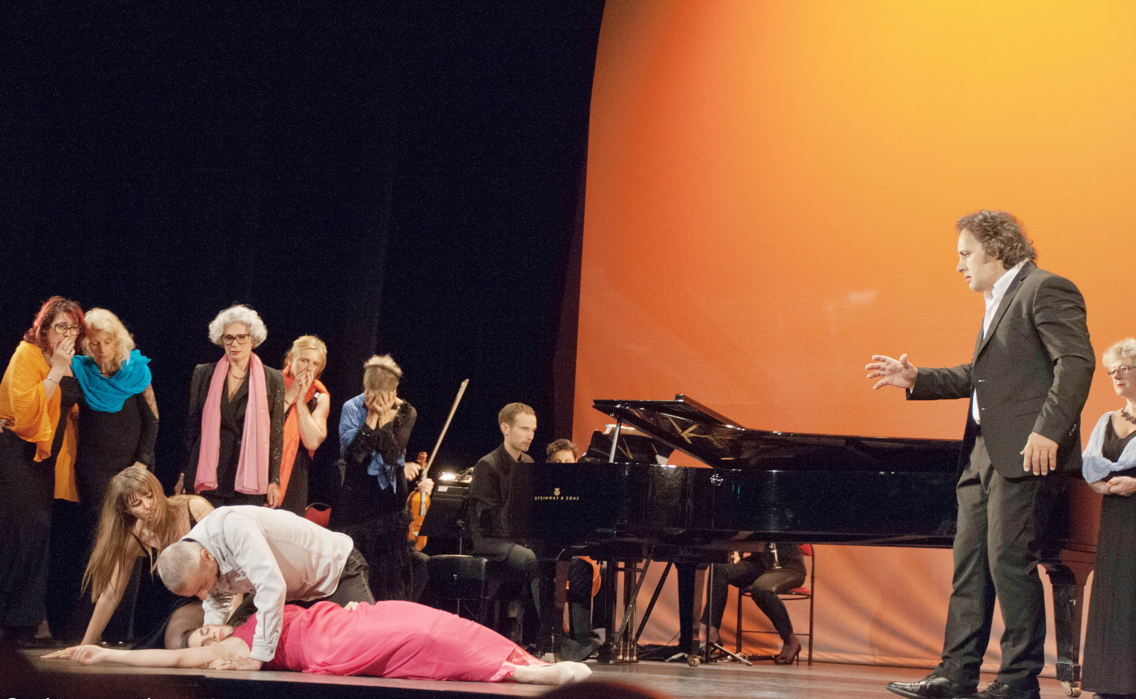 Avec sa Carmen insoumise dans le beau théâtre à l'italienne des Lices, le baryton, metteur en scène et comédien Gilles Ramade synthétise le célèbre opéra de Bizet en se fondant sur la vison crue et sauvage de la nouvelle de Mérimée et ramenant l'ouvrage à ses personnages et airs principaux, pas forcément dans l'ordre imaginé par Meilhac et Halévy. La bagarre entre cigarières tourne à la cacophonie d'un chœur faux et José, adjoint de l'inspecteur qui mène l'enquête, est plus un mauvais garçon jaloux, n'hésitant pas à tuer, que le jeune sous-officier naïf et amoureux. Le drame est accompagné par un ensemble instrumental réduit à un piano, un violon, un violoncelle, une flûte et une clarinette dans une orchestration tout à fait efficace, tandis que Cécile Piovan en Carmen, Jean Goyetche en Don José et Omar Hasan en Escamillo rendent avec beaucoup de crédibilité leur coté tragique aux personnages.