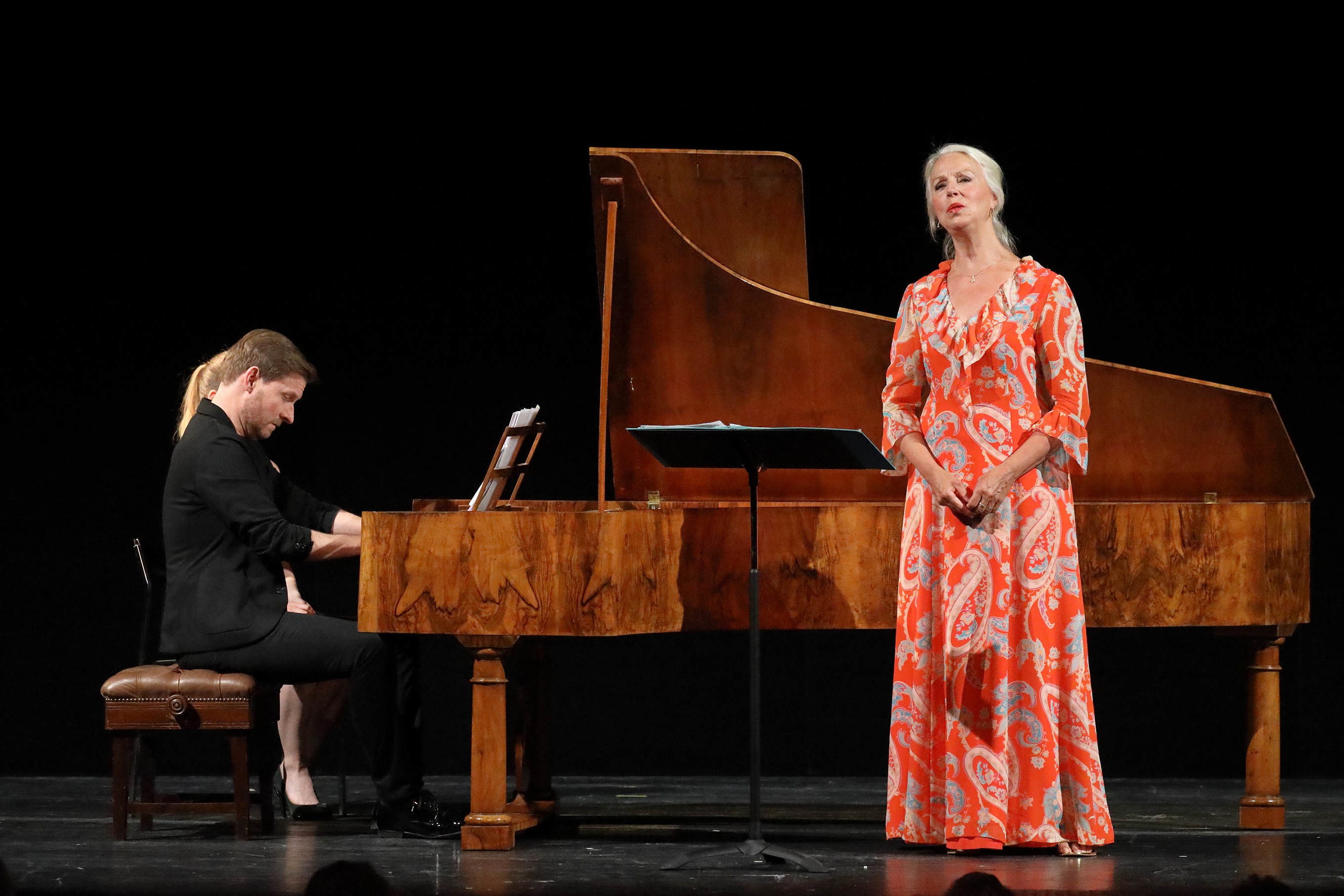 Mieux vaut ne pas venir à ce concert avec de fausses attentes : la voix d'Anne Sofie von Otter n'est plus celle de ses débuts, et ce qu'elle offre aujourd'hui au public n'est plus la plénitude sonore de ses plus belles années. Ce qui n'a pas changé, en revanche, c'est l'intelligence et la sûreté de goût de l'interprète. Le programme qu'elle propose ce soir prouve une fois de plus ces qualités, dans le cadre idéal du Théâtre Cuvilliés. La première bonne idée de la soirée est le choix de Kristian Bezuidenhout pour l'accompagner. Le pianoforte n'a pas les faveurs des orthodoxes du Steinway, mais un tel programme en justifie mieux que tout l'emploi. Schubert est le fil rouge du récital, mais c'est par Mozart qu'il commence, pure musique de salon – non pas dans le sens d'une mondanité, mais d'une soirée intime où la frontière entre musiciens et public s'efface. La voix de la chanteuse devient souvent blanche, et une tension apparaît dans les notes les plus difficiles, mais c'est cela aussi le salon : non pas les premiers virtuoses du moment, mais des êtres chers qui chantent pour vous. Anne Sofie von Otter est un être cher pour tant de mélomanes.