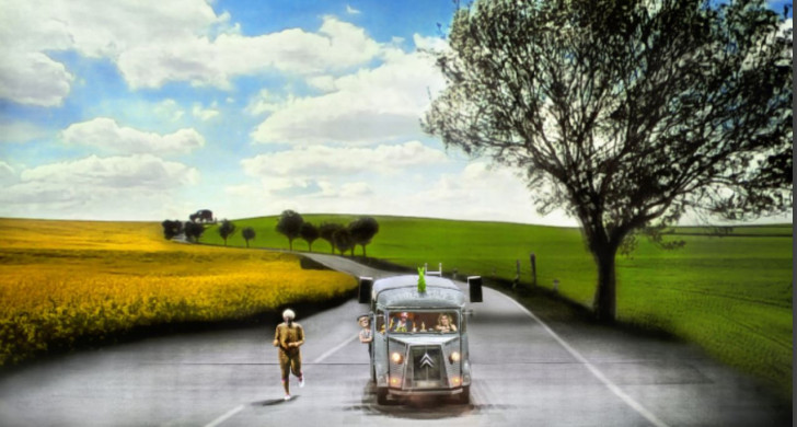 Dès l'ouverture, particulièrement longue il est vrai, souffle sur l'écran de Manuel Braun, un vent de liberté et de fantaisie avec le minibus Citroën (Type H) des années soixante, joyeusement conduit par Vénus. Il sillonne les routes de forêt bavaroises à belle allure. À bord, trois autres personnages, mi-punks, mi-circassiens : le Nain Oskar, le Drag-queen Le Gâteau Chocolat (le britannico-nigérian dans sa tenue jaune à frou-frou est irrésistible) et le clown triste Tannhäuser, fatigué de toute évidence par cette existence de fortune et les manières expéditives du groupe : on vient de les voir écraser un vigile après avoir volé des hamburgers… Le « tube » s'arrête devant une maisonnette forestière qui plante le décor, scénique cette fois, du premier acte. Après ses démêlés avec Vénus (dont la tenue noire à paillettes scintille), Tannhäuser se retrouve seul près du petit lac jouxtant le Festspielhaus, où il retrouve ses amis du Wartburg, tandis que, sur la vidéo, le minibus vient de forcer la barrière qui empêche chaque soir les voitures de monter sur la « colline verte ». Durant l'entracte, Le Gâteau Chocolat et Oskar, bel et bien installés dans les jardins, offrent aux spectateurs une performance, sorte de parodie des airs de Tannhäuser…