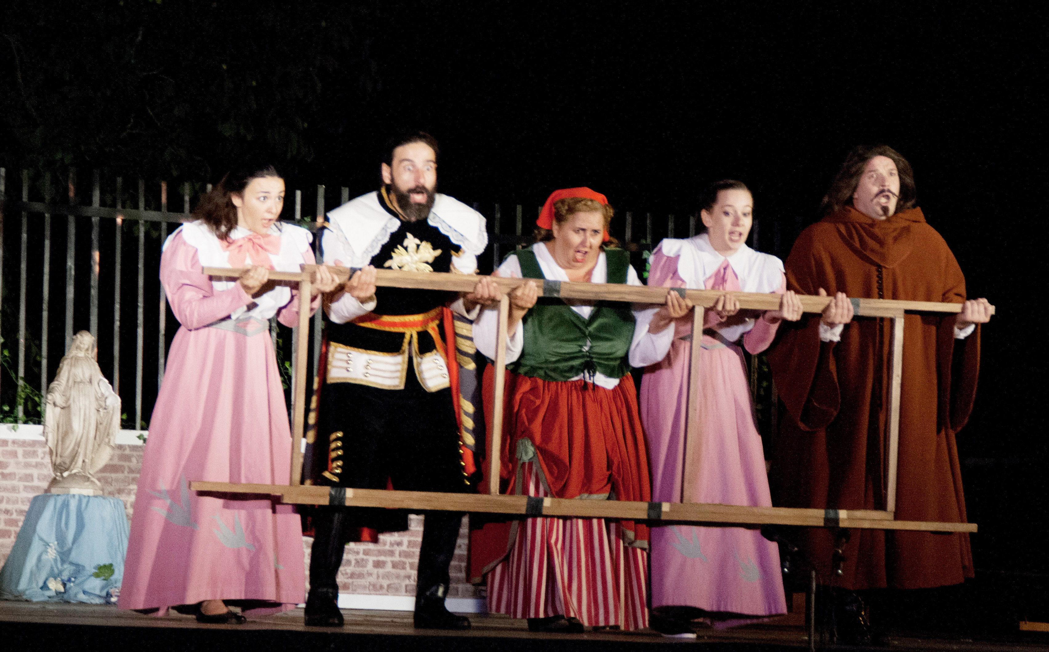Samedi 3 août, la troupe des Chants de Garonne reprenait Les Mousquetaires au couvent de Louis Varney en coproduction avec Divinopéra. À la frontière entre l'opérette et l'opéra comique, l'ouvrage exige toutefois des chanteurs de premier ordre. Considéré comme désuet aujourd'hui, l'argument pour le moins léger s'inscrit dans le style de l'époque.