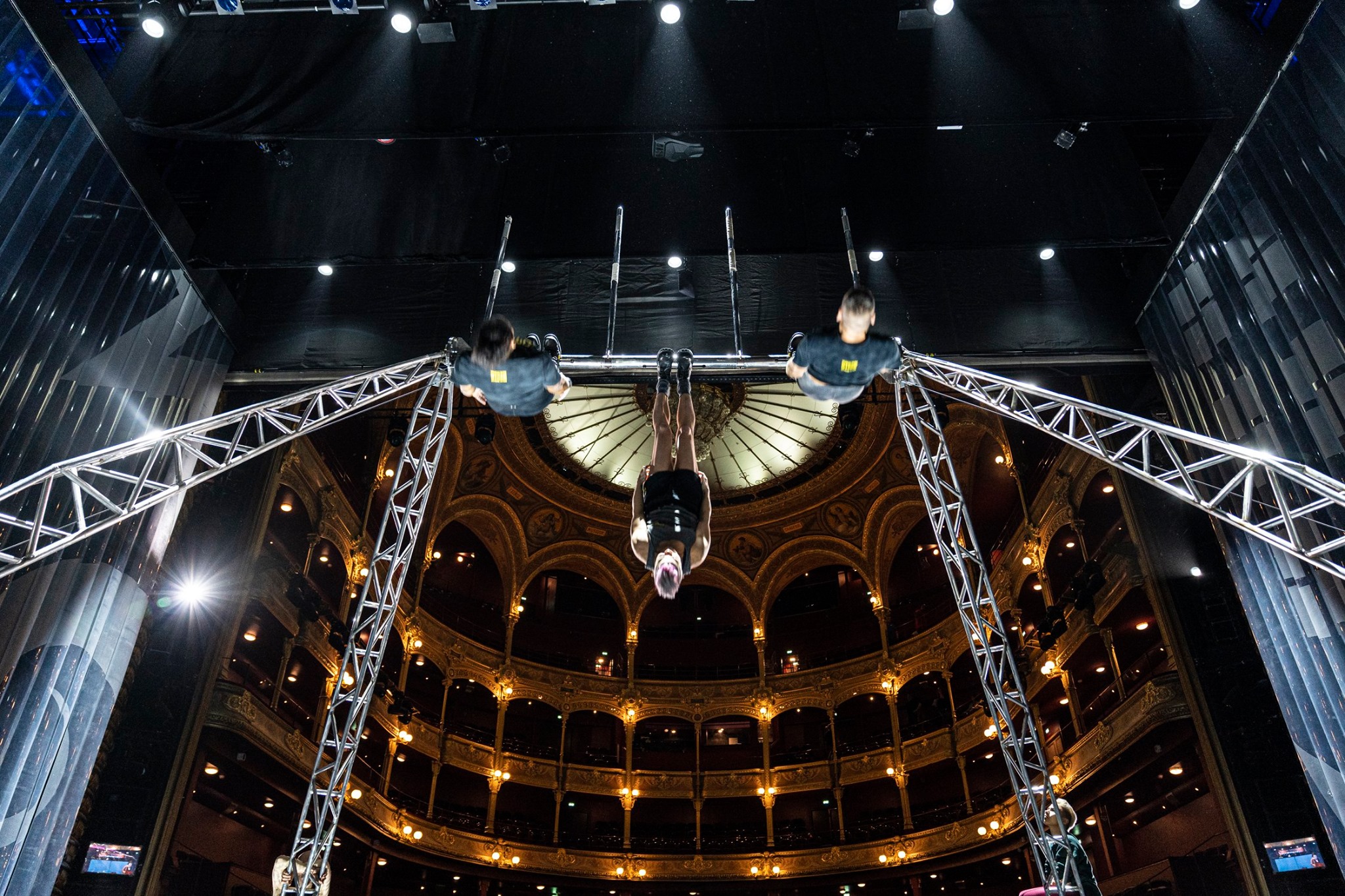 Batucada géante, arts du cirque et création sonore se croisent et interagissent dans Parade, le spectacle imaginé par les nouveaux directeurs du Théâtre du Châtelet pour la réouverture de l'établissement mythique qui retrouve ses couleurs d'origine après deux ans et demi de travaux.