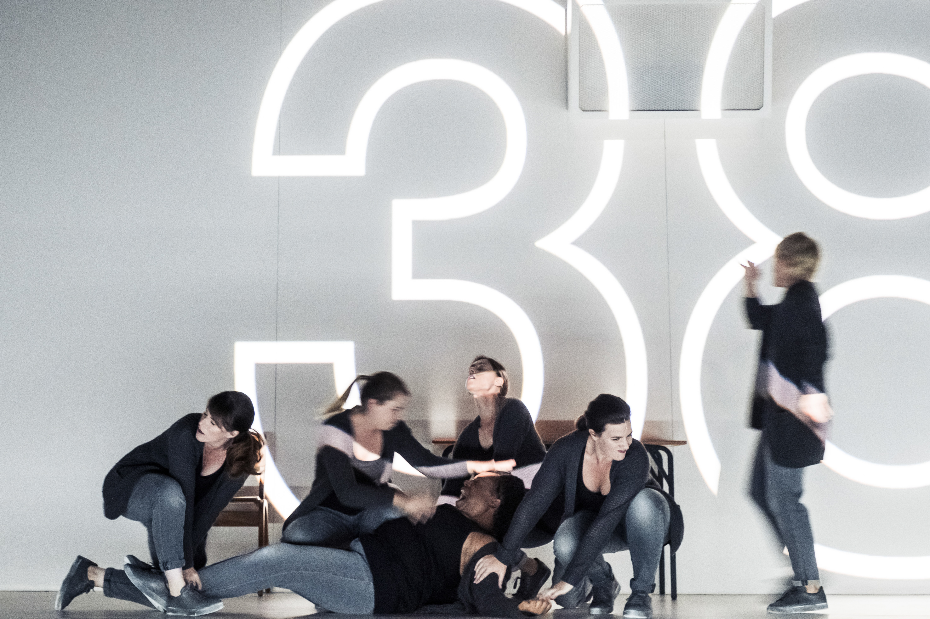 C'est cet aspect non linéaire du discours et cette pluralité des voix intérieures qui intéressent le compositeur. La voix multiple lui suggère l'idée du collectif de six chanteuses, avec Gwen, l'anti-héroïne, placée au centre du groupe. Dans la mise en scène implacable de l'Américain Ted Huffman, une proximité s'instaure entre l'ensemble instrumental (douze musiciens placés au-dessus de la scène) et le plateau. Répartis en trois zones autour du chef, les instrumentistes doivent en effet être vus, prenant part, pour certains d'entre eux, à la dramaturgie. La scène, quant à elle, est nue et blanche, comme une salle d'hôpital, avec une table et quelques chaises dont on connait, depuis Pina Bausch, les vertus scénographiques. Seule la vidéo, celle de Pierre Martin, viendra animer les murs de cet espace confiné.