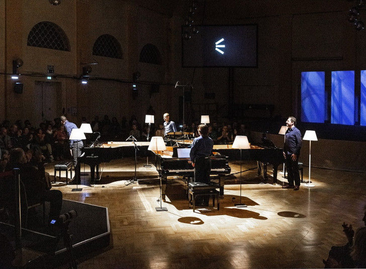 L'autre concert très attendu de la soirée est l'interprétation par les quatre pianistes Mélaine Dalibert, Stéphane Ginsburgh, Nicolas Horvath et Wilhem Latchoumia de trois œuvres majeures de Julius Eastman, musicien minimaliste et artiste maudit redécouvert il y a peu : Evil Nigger, Crazy Nigger (1979) et Gay Guerilla (1978). Le public est disposé tout autour des instruments et plongé dans une chaleureuse atmosphère lumineuse dorée, propice au lâcher-prise et à l'introspection. Dans l'excellente acoustique de la Salle de la Bourse, les musiciens réussissent le miracle de faire entendre des pianos qui, dans une fusion sonore savamment mise en place, semblent jouer des bourdons à l'archet, filtrer leurs fréquences, s'enrichir de granulations et même chanter. Un concert extatique.