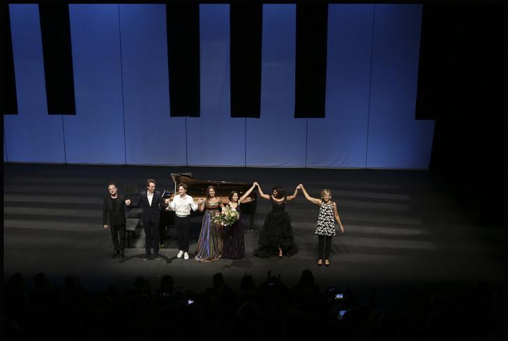 Dimanche, en fin d'après-midi, tous les artistes invités sont réunis au Théâtre du Beauvaisis pour le concert de clôture. Secret absolu concernant le programme jusqu'au jour J ! Khatia Buniatishvili partage la scène avec plusieurs musiciens dont Hélène Mercier. Bel équilibre, dynamiques franches… Sous leurs doigts, un extrait vitaminé de Petrouchka. Thomas Enhco les rejoint dans les Valses et Romances de Rachmaninov. Un six mains vibrant à l'expression délicate et variée. Les Danses Hongroises deviennent une histoire de famille géorgienne. Ana Bakradze est aux côtés de Gvantsa Buniatishvili, dont le jeu délié donne le ton. La benjamine affiche un phrasé irrésistible puis est embarquée dans un épisode comique avec Khatia Buniatishvili. D'humeur facétieuse, celle-ci se met à accentuer ou ralentir le tempo comme dans un sketch. Les sœurs se retrouvent pour un Libertango dont elles ont le secret.