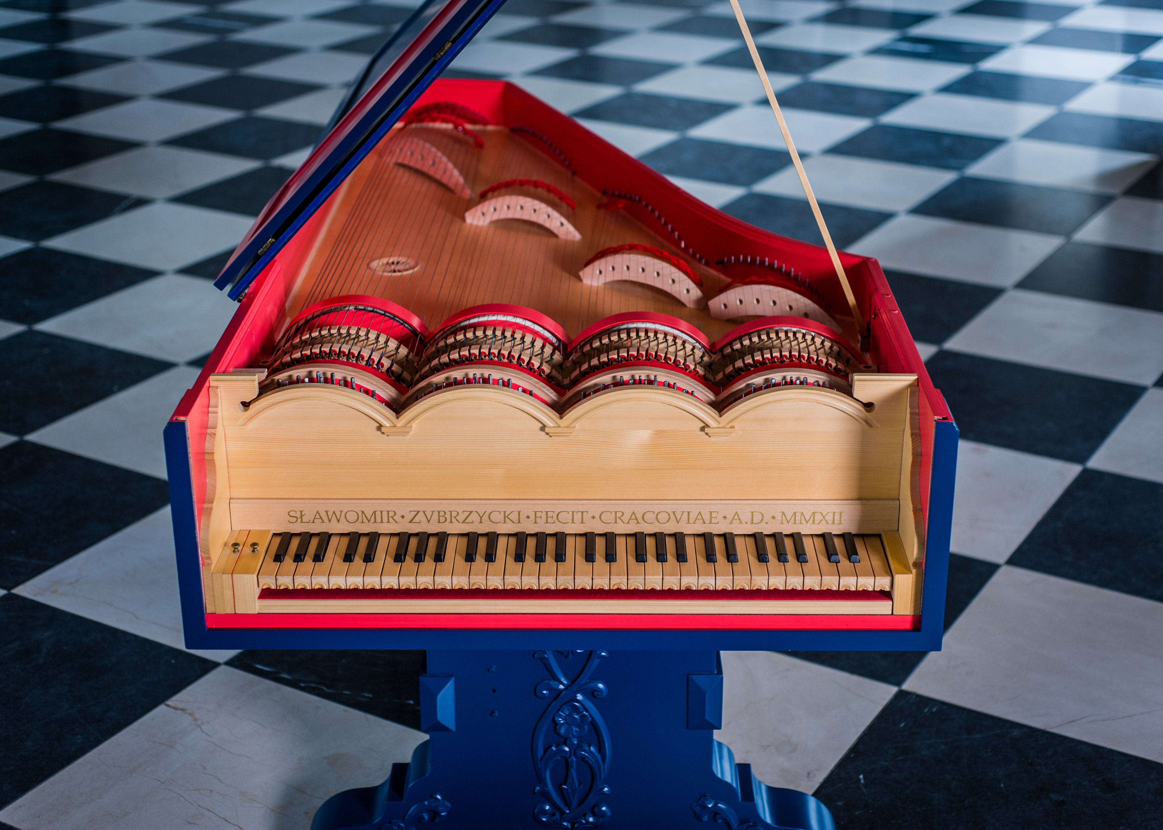 Voilà comment Sławomir Zubrzycki résume son travail : « L'instrument que j'ai construit entre 2009 et 2012 n'est une copie d'aucun instrument historique, car ils ont presque tous été perdus et aucun plan de construction n'a survécu. Mon instrument est une synthèse qui s'appuie sur diverses sources, parmi lesquelles les dessins de Léonard de Vinci et la description de Michael Praetorius ont joué un rôle de premier plan. […] Dans mon travail de reconstruction, j'ai suivi trois indices. Le premier était l'idée de la sonorité ; le second, l'idée du répertoire potentiel […]. Ce n'est qu'alors que je pouvais penser à la structure de l'instrument. Après la lecture du livre de Praetorius, je savais que sa sonorité devait ressembler à celle de la viole de gambe, mais qu'elle pouvait aussi entrer légèrement dans la gamme des sons que produisent d'autres instruments à cordes, à vent ou, dans certains cas, de l'orgue. »