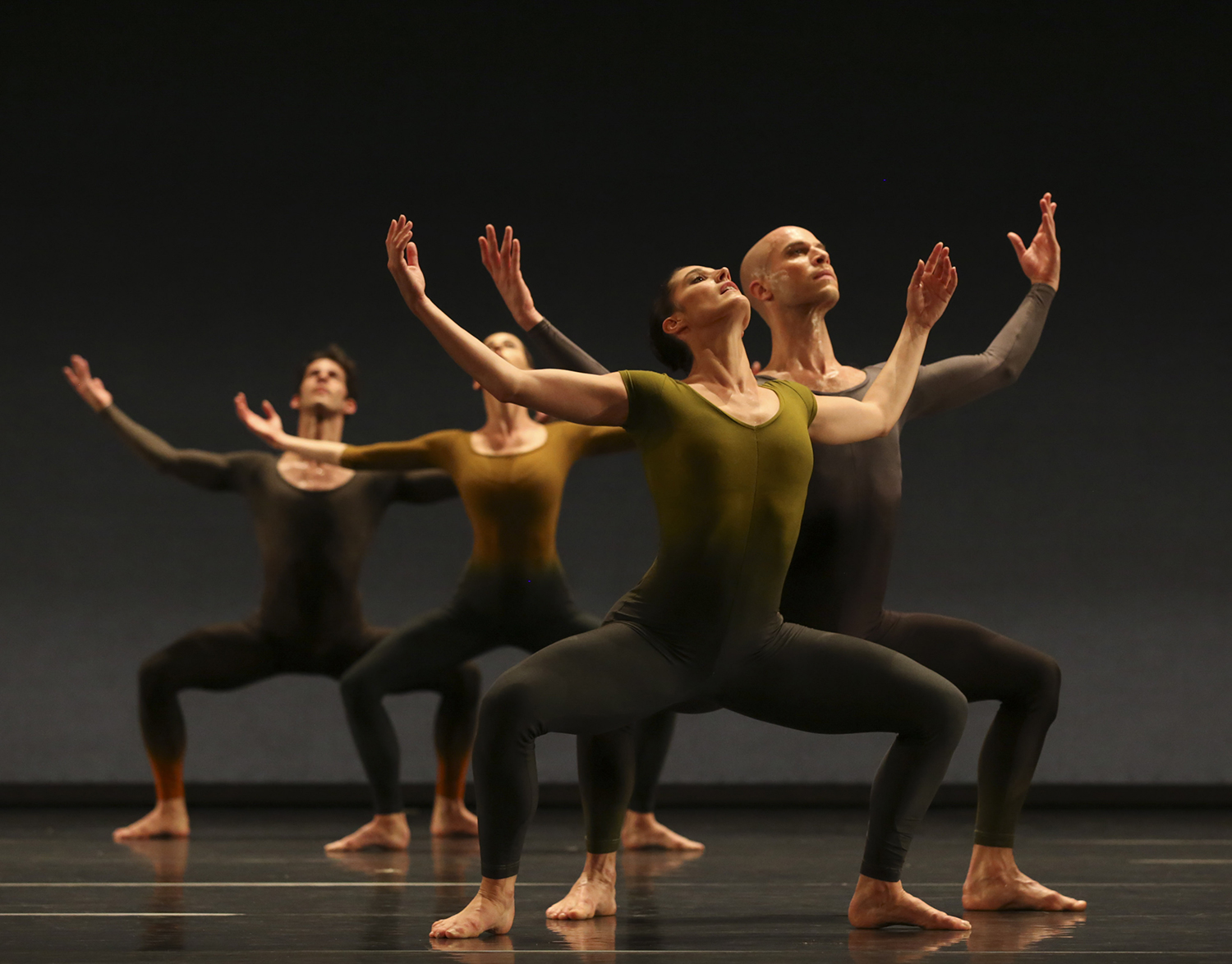 Le Ballet de l'Opéra de Lyon reprend Exchange de Merce Cunningham, une pièce pour quinze danseurs qui date de 1978, et n'a pas pris une ride. La virtuosité des danseurs ne fait pas un pli non plus. Ils ont enregistré cette préciosité chirurgicale du langage cunninghamien au millimètre près. Il en va d'un élan, et d'un cœur en trois parties, la première utilise la moitié des danseurs seulement, et pas des moindres. En effet il y est question de Danser. Et oui, il s'agit chez Merce de danser, et la musique n'y est pour rien, car elle se joue indépendamment des mouvements qui s'y lancent. Ici, il s'agit de celle de David Tudor, une partition électronique, elle se nomme « Weatherings », ce qui signifie en français météorisations, altérations climatiques, bref, cela n'a soi-disant rien à voir. Il s'agit de l'ensemble des processus mécaniques, physico-chimiques ou biologiques de réduction élémentaire des roches et des minéraux à la surface de la terre… Et pourtant, cette matière polluée que voulait Jasper Johns à l'époque dans les décors (aucun) et les costumes (très purs, très beaux, quoique voulant donner une note polluée, soit grise et un tout petit peu de couleur effacée mêlée) donne à penser quelque chose d'ineffable, qui est au cœur même de la danse, à savoir, un rien dansé, un pur néant de sensations occultées et pourtant bien ressenties, une contradiction dans les termes, de la philosophie de la danse donc.