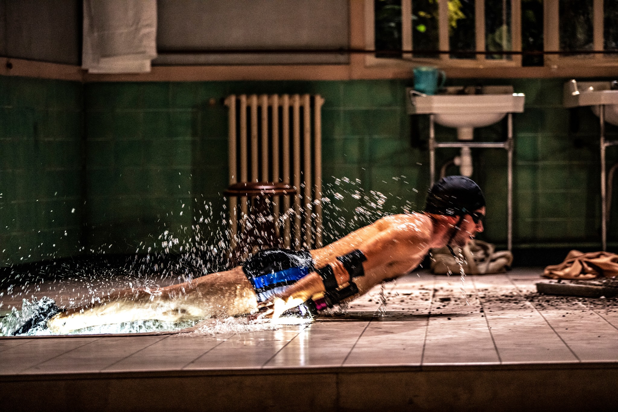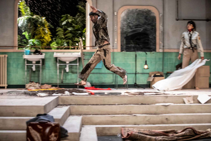 Ce chaos est aussi un élément bien présent dans la mise en scène de Jeanne Candel. L'unique décor de l'immense salle de bain du Général s'éventrant à l'aide d'un véritable marteau-piqueur (hallucinant !) afin de découvrir sa dépouille, Damien Mongin (Le Général), fantomatique et énigmatique en costume de ville ou en maillot de bain et palmes aux pieds, fait rire par à coup le spectateur, et cela malgré l'ignominie qu'il incarne.
