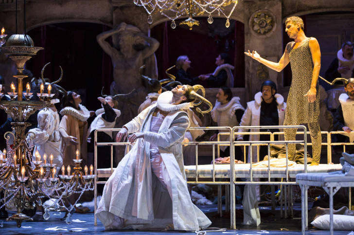 Si Paris faisait la part belle à la danse hip-hop, c'est à la danse classique que Genève donne ici la préférence. Ainsi, l'œuvre de Jean-Philippe Rameau semble pouvoir s'accommoder à toutes les sauces. Comme à Paris, on mélange chanteurs, chœur et danseurs en espérant qu'on ne reconnaîtra pas les uns des autres. Mais, rien n'y fait. Même si la proposition du chorégraphe Demis Volpi s'identifie plus à des déambulations lascives qu'à des gesticulations acrobatiques de danses de rues, un danseur muet ne peut se confondre avec un choriste dansant. En costumes hétéroclites, allant du haillon au chapeau cornu, en passant par le débardeur marcel et le casque de CRS, tout ce beau (?) monde se mélange sans qu'on saisisse les tenants et les aboutissants de leurs déplacements.