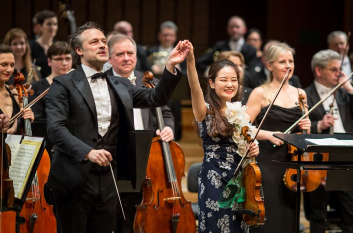 La soirée commence avec le Concerto pour violon en ré majeur op. 77 de Brahms. Bomsori Kim, souriante, s'en empare avec enthousiasme, chaleur et délicatesse. Une élégance un brin introvertie, qui comme dans son album DG, subjugue par la beauté de son legato, soulignant l'aspect lyrique de certains passages. Dans les moments plus agités, la violoniste change radicalement d'ambiance par sa lecture pleine de bravoure. Son jeu d'archet captive par sa sonorité noble et riche en harmoniques dans le registre grave. Dans la cadence de Joseph Joachim précédant la clôture du premier mouvement, elle surprend par sa spontanéité qui se traduit par une accélération instantanée du tempo, faisant penser à une improvisation. Si l'Adagio révèle, sous ses doigts, une cantilène plaintive, le finale est en revanche une explosion de joie, où l'ardeur du violon reste en harmonie avec l'ampleur et la majesté du geste de Sascha Goetzel. Pour bis, la soliste interprète le dernier mouvement de la Sonate n° 4 op. 27 d'Eugène Ysaÿe, impressionnante par sa légèreté qui, conjuguée à la régularité du pouls, évoque une sorte d'un perpetuum mobile.