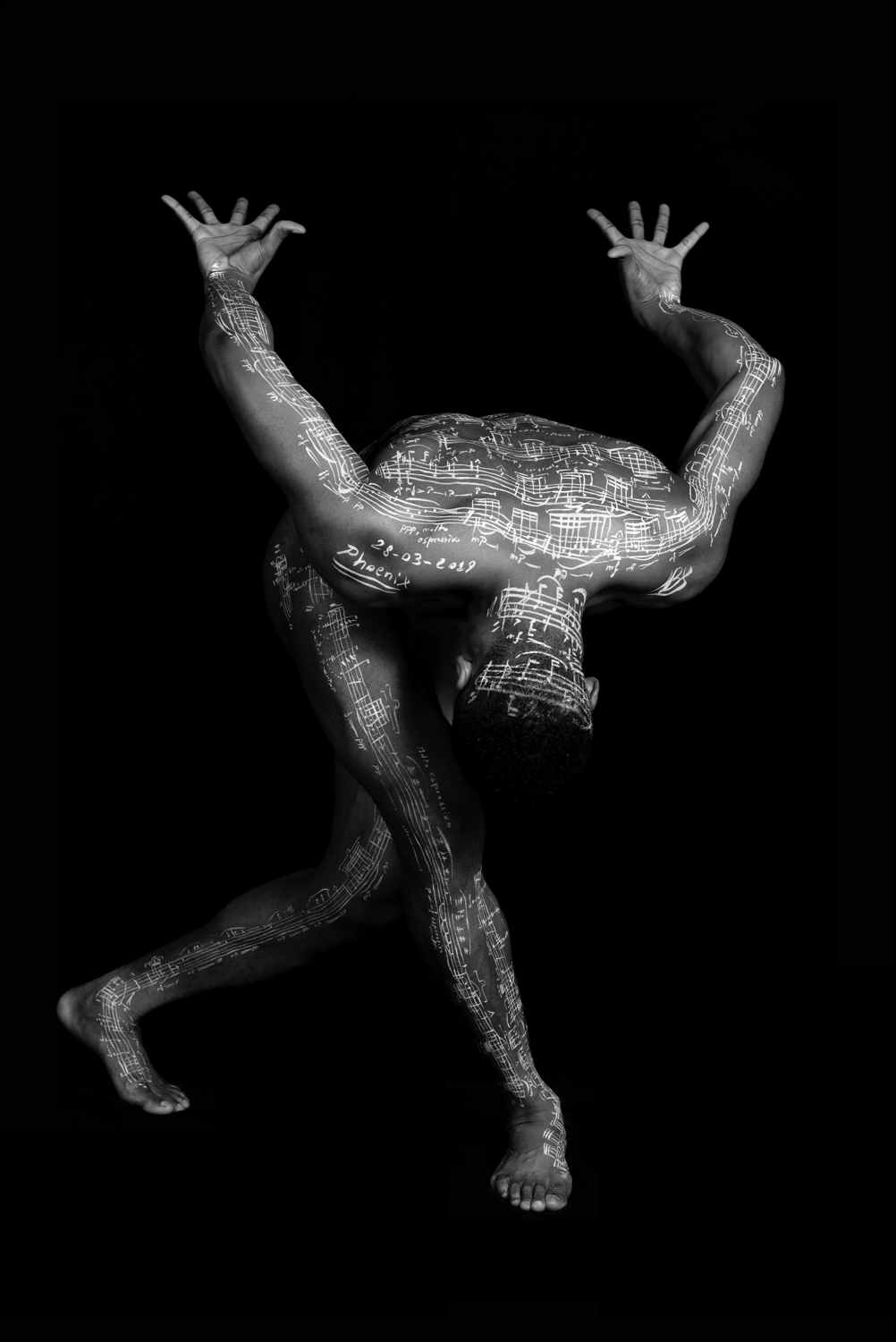 JBS : Sous forme de tatouages éphémères destinés à disparaître à l'eau, cette nouvelle pratique trouve sa seule chance de survie dans la photographie. Je me suis donc formé à la photo et j'ai inventé un nouveau genre de reproduction en noir et blanc qui porte le nom « d'identigraphie ». En premier lieu, je décide de la position du corps qui apparaîtra sur la photo, non seulement pour sa lecture mais pour renforcer et affirmer l'expressivité du passage musical en question. Les modèles avec qui je travaille connaissent très bien mon projet et collaborent avec moi dans le plus grand respect et le plus grand soin. Je reviens du Japon où la Maison Chanel a organisé l'exposition d'une soixantaine de mes photos qui retiennent aujourd'hui toute l'attention des galeristes.