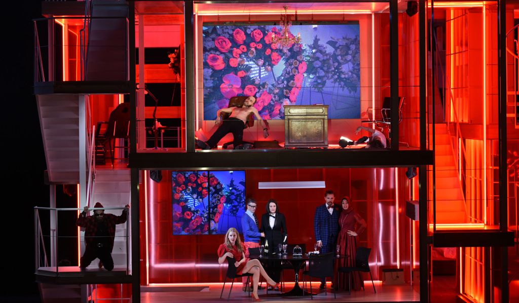 Cosi fan tutte, moyennant quelques adaptations, supporte mieux cette translation à notre époque moderne par l'éternité de son sujet : de l'infidélité et de l'intermittence des cœurs. Les sœurs Fioridigi et Dorabella sont ici des youtubeuses influenceuses, dans le domaine du yoga ou du maquillage. Leurs deux amants Gugielmo et Ferrando sont des soldats du feu appelés un peu par hasard, par le devoir, dans l'immeuble où habitent leurs belles et où le Commandeur-notaire vient de décéder d'un malaise cardiaque.