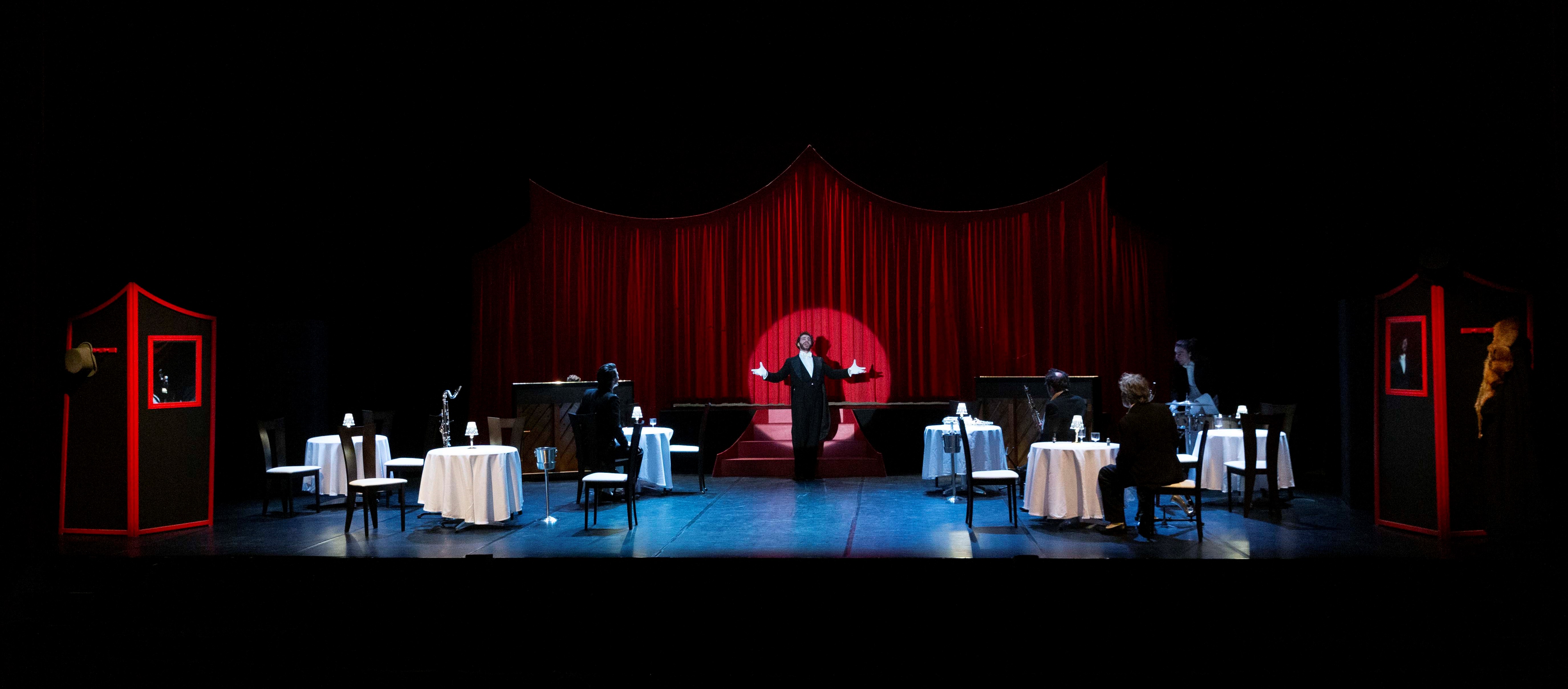 Deux comédiens gèrent cet établissement en folie, mais à tout cabaret son maître de cérémonie. Le meneur de revue en chef se nomme . Visage et corps élastiques, sourire carnassier insaisissable, timbre insinueux, à la fois Loup et Chaperon (ah sa cueillette des noisettes !): le Loup de Tex Avery c'est lui ! C'est donc lui qu'en toute logique lance au final dans le public à la recherche d'une nouvelle proie… pour un ultime frisson lupin de plaisir et d'effroi mêlés.