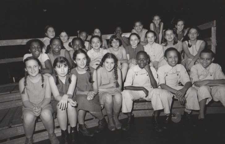 CG : Jean-Claude Fall, directeur du TGP, avait immédiatement pensé au CNR d'Aubervilliers – La Courneuve, mais le directeur, Michel Rotterdam, ne s'est pas décidé tout de suite. Il nous a rencontré plusieurs fois, il a réfléchi un bon moment, il voulait savoir à qui il avait affaire, et puis un jour il a décidé de nous faire confiance. Il était très soucieux du comportement que l'on aurait avec les enfants. C'est lui qui les a choisi ainsi que les musiciens. Toute la préparation s'est faite sur une année scolaire. Il y avait deux chefs de chœur, François Hugues Leclerc et Marie Joubinaux. Deux fois par semaine environ, ils travaillaient la partition avec les enfants et moi j'y allais une fois sur deux. On parlait beaucoup du contexte, de la guerre. Je leur montrais les dessins des enfants de Terezin, les esquisses de Béatrice, les maquettes de costumes… Le chœur chantait toutes les parties car on avait décidé qu'il n'y aurait pas de soliste, que les rôles passeraient de l'un à l'autre. Nous avons joué trente fois environ en Île-de-France puis dix en Alsace, au Théâtre Jeune Public de Strasbourg et à l'Atelier du Rhin de Colmar. Nous avons eu à chaque fois de belles critiques.