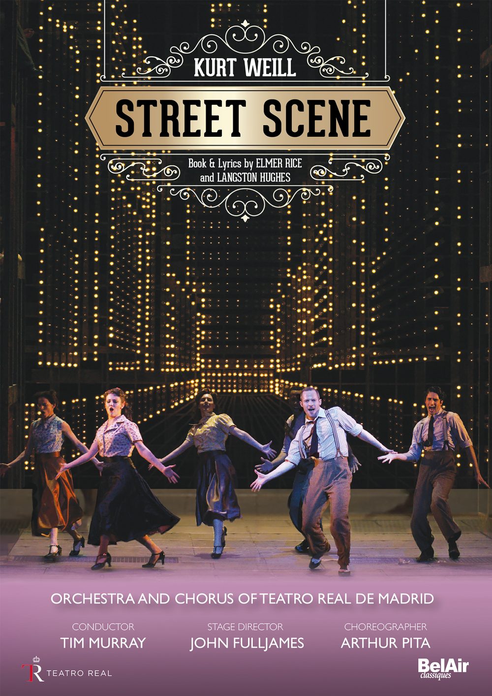 La mise en scène de John Fulljames a connu, à Londres en 2011, puis à Paris en 2013, une première et sobre mouture. Des moyens autrement conséquents offerts à Madrid en 2018 (visibles à Cologne en 2019 et à Monaco en 2020) permettent d'immortaliser en DVD Street Scene, que Kurt Weill lui-même considérait comme son meilleur opéra.