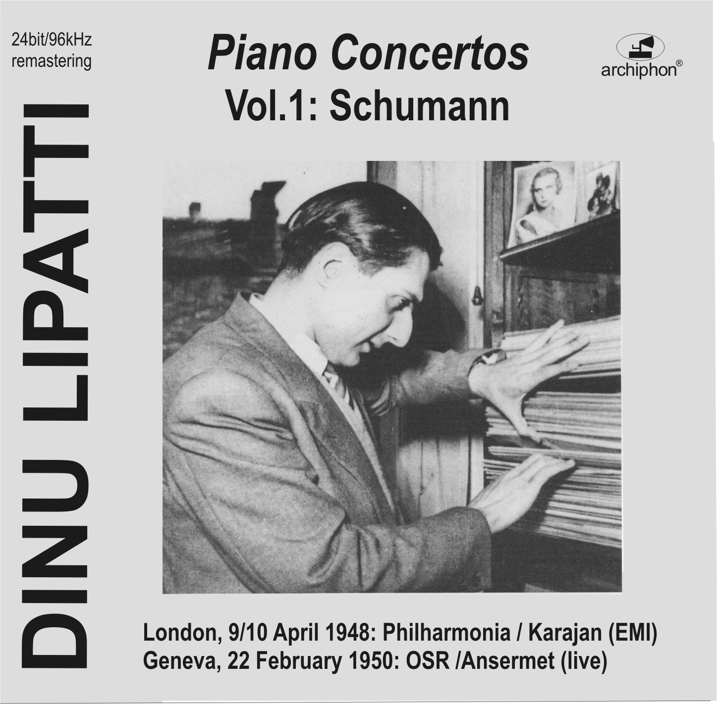 Le volume qui ouvre cette série, renferme deux interprétations du Concerto pour piano en la mineur op. 54 de Robert Schumann : celle de studio, de 1948, la plus connue (dirigée par Herbert von Karajan), ainsi que celle donnée en public deux ans plus tard, sous la baguette d'Ernest Ansermet. Pour l'exécution antérieure, Archiphon nous la restitue à deux reprises, dans des reports réalisés à partir du premier pressage du microsillon EMI de Londres (de 25 cm de diamètre), ainsi que dans un repiquage fait depuis le pressage Columbia Masterworks (de 30 cm de diamètre) publié aux États-Unis en 1956. Pourquoi cette mise en parallèle ? Si l'édition britannique se contente de hautes fréquences plus perceptibles, celle parue de l'autre côté de l'Atlantique, offre davantage d'espace sonore. En revanche, avec leurs bruits parasites contenus, ces transferts ne peuvent être comparés à ceux de l'édition japonaise en SACD hybride par Warner, plus nette, vraisemblablement préparée directement à partir des matrices métalliques originales.