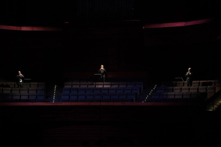 Il faut limiter les contacts, maintenir les musiciens à distance, et pour le moment tenir le public à l'écart, mais le monde ne peut vivre longtemps sans musique. Alors comme la Philharmonie quelques jours plus tôt, Radio France reprend les concerts, enregistrés pour être regardés et écoutés sur internet, tandis que dans la salle, une poignée de journalistes, dont nous avons le privilège d'être, se tient cachée en fond de parterre.