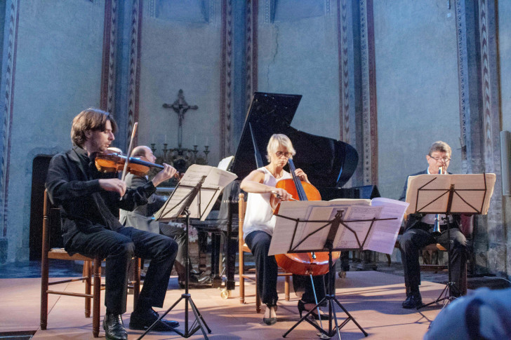 En jauge réduite de moitié et malgré la difficulté du programme proposé, le public était venu en nombre le 19 juillet dernier pour écouter le Quatuor pour la fin du temps d'Olivier Messiaen. Cette œuvre, toujours moderne, fut composée et créée en 1941 alors que Messiaen et ses compagnons étaient prisonniers dans un stalag en Silésie. La configuration originale d'un piano, violon, violoncelle et clarinette résulte des instrumentistes que Messiaen avait à sa disposition dans ce contexte particulier. Au-delà du contexte de l'écriture et de la création, il s'agit avant tout d'une œuvre spirituelle, en huit mouvements sur une vision de l'Apocalypse de saint Jean. D'une difficulté d'exécution extrême, cette pièce n'en possède pas moins une grande force et une puissance spirituelle intemporelle.