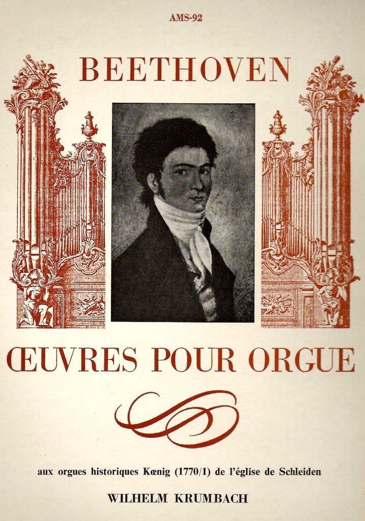 Beethoven, œuvres pour orgue, Wilhelm Krumbach à l'orgue Koënig (1770-71) de la Schlosskirche de Schleiden (Eifel-Allemagne) 1 CD Charlin AMS 92 Collection « Musica Sacra ». Enregistré et publié à l'origine en microsillon en 1967, et repris également en Allemagne sous le label Schwann.