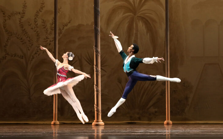 Le spectaculaire pas de deux du Corsaire a été créé à la fin du XIXᵉ siècle, et pourrait être interprété comme une ode à la virtuosité du ballet classique. Beaucoup de solistes à travers le monde apprécient ce pas de deux pour sa technicité et son exigence expressive. A l'occasion de cette soirée, c'est Salome Leverashvili et Timothy van Poucke qui relèvent le défi. Les deux danseurs ont débuté dans la compagnie junior et on rejoint la compagnie principale il y a à peine quelques années. La danseuse est parfaite, avec une ligne exceptionnelle et d'une grande pureté dans son interprétation. Timothy van Poucke est magnifique dans son solo, avec beaucoup de caractère. Le solo de la ballerine est tout aussi impeccable, précis et léger, surtout dans le manège. Le grand manège du danseur ouvre la voie aux fouettés de la danseuse, qui très brave, reste fraîche jusqu'au bout. Léger décalage dans l'orchestre au moment des tours à la seconde de Timothy van Poucke, pour finir en apothéose sur le final éblouissant des deux danseurs.