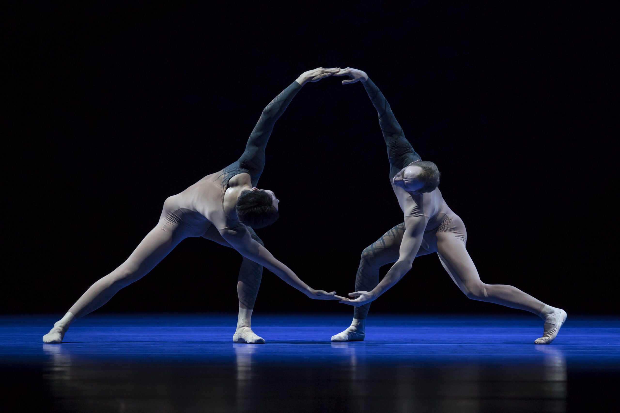 Œuvre abstraite pour sept danseurs, Dov'è la Luna recherche le minimalisme, aussi bien dans la lumière nocturne (fond noir et douche de lumière bleutée sur les danseurs), les costumes, des académiques couleur chair qui moulent les corps dans une quasi nudité, que dans la chorégraphie elle-même, sobre et épurée. Le Concerto pour piano d'Alexandre Scriabine, à la fois tendre et mystérieux, fait écho à cette sobriété. La technique est ciselée, le travail de pointes précis et affuté, les ensembles rigoureux. Dans ce cadre austère, les émotions jaillissent pourtant à chaque instant, au détour d'un geste, à travers les duos où les corps s'enchevêtrent, dans l'écho d'une note qui se détache. Le solo d'ouverture, interprété par Lou Beyne, est particulièrement poignant, sur les sonorités graves et lentes du piano. Le superbe duo central, ici entre Lou Beyne et Jayeong An, tout en délicatesse, pourrait néanmoins gagner encore en sensualité.