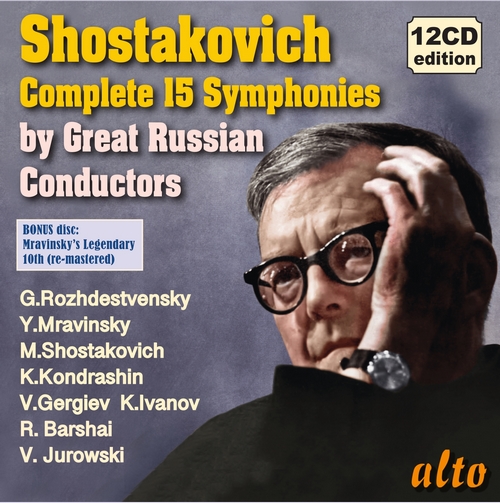 Evgueni Mravinski assura la création de la Symphonie n° 10 dont Alto publie un concert radiodiffusé de “1954” (du 24 avril, précisément). Il est mentionné par erreur comme étant celui de la création alors qu'elle eut lieu le 17 décembre 1953. Le label Saga publia ce document réalisé en studio. Malgré un travail de remastering, il est à la limite de l'audible. Mravinski dirige également la Symphonie n° 12 dont il donne une lecture burinée avec des cordes saisissantes de violence et de souplesse. Il s'agit de la version de 1962 captée à Prague et non celle de 1961 à Moscou ou de 1984 à Leningrad comme le laisse croire le label. Pour la Symphonie n° 8, Alto a repris la gravure du 28 mars 1982 parue chez Philips. L'acidité des voix aigues a été en partie gommée et la spatialisation est plus équilibrée. Un incunable de la discographie !