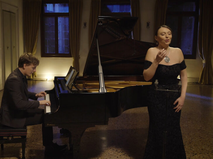 C'est au sein d'un Centre de musique romantique française vide, au cœur de Venise, que le spectateur se promène avant de rejoindre une salle où seul un piano à queue trône au centre, et où l'attendent les deux protagonistes du jour. La commémoration de celle pour qui on fête le bicentenaire de la naissance cette année, s'inscrit dans les moindres détails, jusqu'à la tenue et la coiffure stricte de sa jeune interprète, une tenue faisant directement référence au portrait d'Ary Scheffer peint en 1840, où Pauline Viardot pose de biais.
