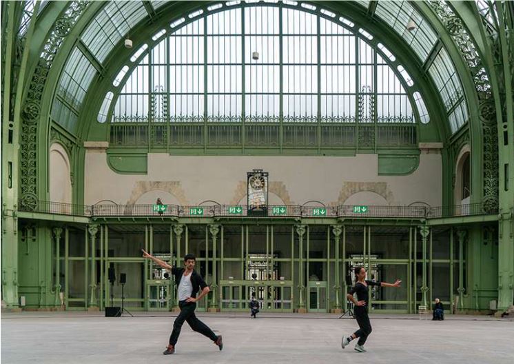 C'était donc le chorégraphe idéal pour inaugurer la fermeture temporaire du Grand Palais, créé en 1900 pour disparaître après l'Exposition universelle, et que Paris a finalement conservé pour la joie des yeux et des cœurs émerveillés qui pénètrent dans cette immense verrière, fragile et forte comme une dentelle devenue bâtiment de vert, de verre et de métal. 1900, c'est aussi l'année où Arthur Schnitzler publie La Ronde, qui raconte des couples de toutes classes sociales, qui s'aiment et sont aussi menacés par un virus (à l'époque, c'était la syphilis).