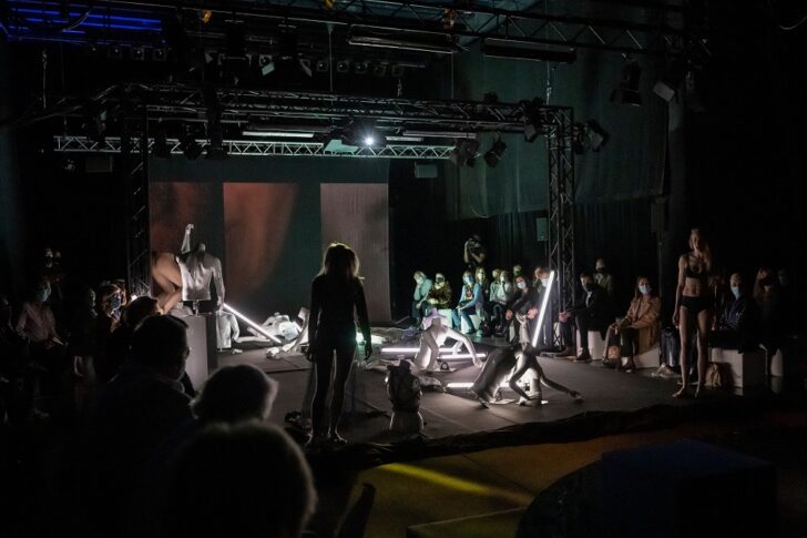 Création-commande du festival, Snow On Her Lips de Sebastian Rivas nous a fait vivre une expérience singulière, le 20 mars, dans la salle des Étoiles du Sporting d'été. Production du GRAME, la représentation : « Monodrame pour une performeuse, deux instrumentistes, objets électronique et vidéo », exécutée par Emma Terno, Daniel Zea, et le Collectif Êkheía (Bastien Roblot et Olivia Martin), repose sur une écriture hybride instrumentale et une théâtralisation qui mettent en scène la femme et son corps, dans une poétique de la fragmentation prélude à une reconstruction. Les objets, mannequins démembrés, participent de la dramaturgie inspirée des Affetti des toiles du Caravage. Il en est de même des sons, électriques et instrumentaux, les corps vivants ou inertes devenant eux-mêmes instruments.