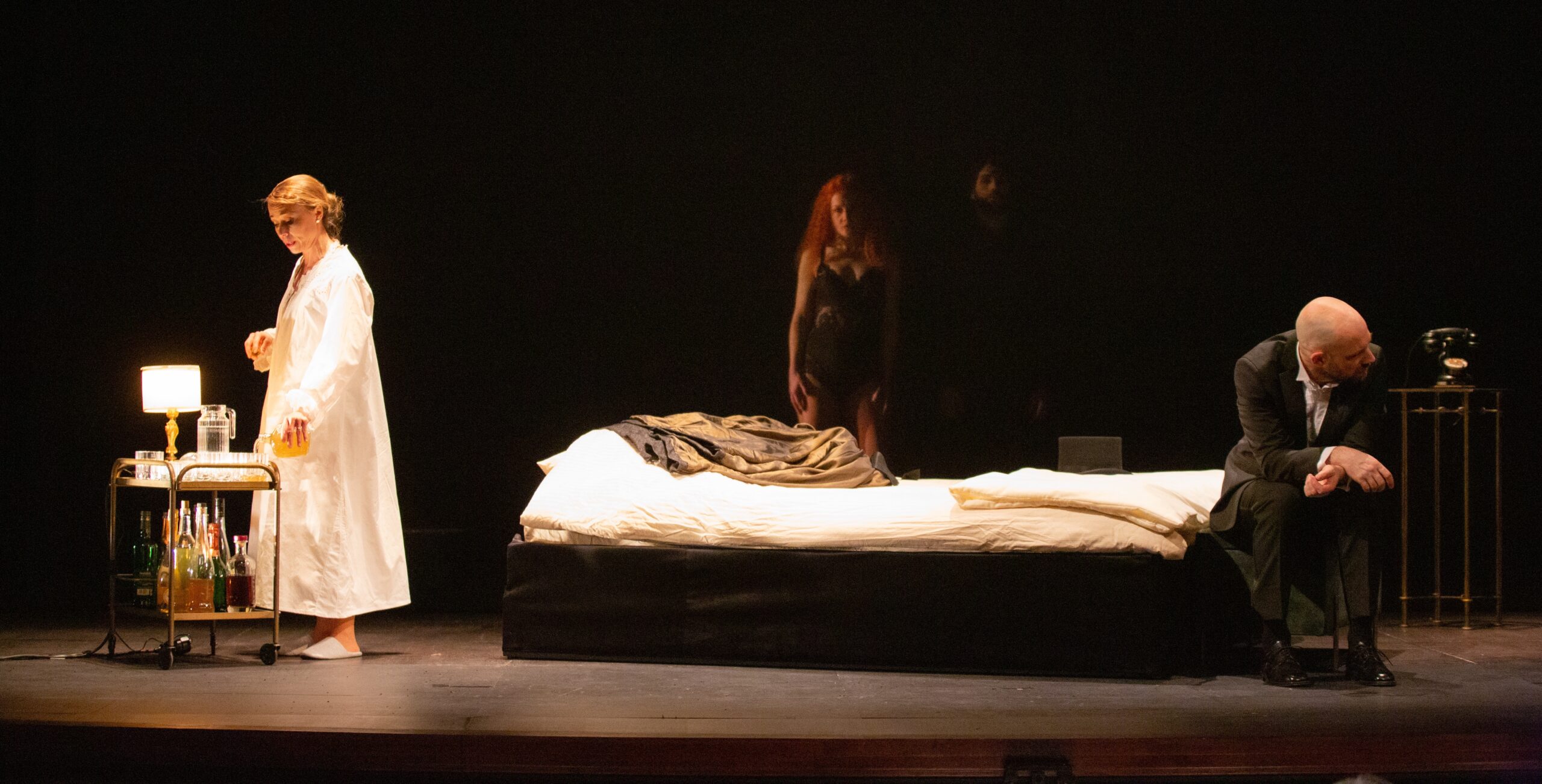 Le décor contemporain est, là encore, réduit à l'essentiel : un grand lit blanc et un téléphone pour cette satyre pointant les effets néfastes du temps et de la mode. L'écriture « durchkomponiert » de Schönberg (conçue dans un flux continu) sert de près le texte allemand, celui de Max Blonda, alias Gertrud Schönberg (l'épouse du compositeur). Conçu en 1928, l'opéra bouffe – le seul opus véritablement léger et gai du maître viennois – n'en est pas moins dodécaphonique, à l'écriture très/trop exigeante avec ses rythmes de danse stylisée et ses couleurs acidulées que la réduction instrumentale drastique de Takenori Nemoto n'adoucit pas. La voix de Mélanie Boisvert éminemment véloce prend une couleur straussienne idéale qui se joue d'une ligne vocale virtuose. Antoine Philippot/le mari n'est pas en reste, souvent sollicité dans son registre aigu et assumant les écarts d'un parlé-chanté très capricieux. Lorsque le téléphone sonne, c'est le second couple, que l'on devinait, muet, en fond de scène, qui entre dans la chambre, découvrant un mari et une femme plus unis que jamais, avec leur enfant qui s'est réveillé. Le quatuor vocal qui s'ensuit est une page étonnante, une strette finale un rien éprouvante pour les voix (le ténor est un peu en retrait) emmené par les aigus lumineux de Mélanie Boisvert. Sa voix parlée à la fin de l'opéra, et surtout celle de l'enfant – « que signifie la modernité, maman? » – n'est pas sans évoquer la dernière page de Wozzeck du disciple Alban Berg.
