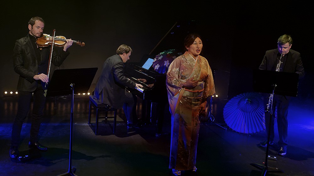 Au final, le trio devient quatuor à l'apparition, en kimono, de la soprano Rieko Hiramatsu, venue interpréter les magnifiques chansons de Princesse Mononoké, du Château dans le ciel, du Château ambulant, de Ponyo sur la falaise. L'émission est plus lyrique que celle, blanche et enfantine, des originaux mais l'émotion est au rendez-vous à l'audition de ces pièces familières agrémentées du vibrato d'une chanteuse d'opéra.
