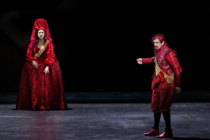 Paris. Opéras Garnier 21-05-2021. Marc-André Dalbavie (né en 1961) : Le soulier de satin, opéra en quatre journées (CM) sur un livret de Raphaèle Fleury d’après Claudel ; mise en scène Stanislas Nordey ; décors Emmanuel Clolus ; costumes Raoul Fernandez ; lumières Philippe Berthomé ; vidéo, Stéphane Pougnand ; créateur sonore Daniele Guaschino ; chorégraphie, Loïc Touzé. Ève-Maud Hubeaux, Doña Prouhèze ; Luca Pisaroni, Don Rodrigue de Manacor ; Nicolas Cavallier, Don Balthazar, Saint Nicolas, Frère Léon ; Marc Labonnette, Le père jésuite, Le roi d’Espagne, Saint Denys d’Athènes, Don Amagro, Deuxième soldat ; Yann Beuron, Don Pélage ; Jean-Sébastien Bou, Don Camille ; Béatrice Uria-Monzon, Doña Isabel, Doña Honoria, La religieuse ; Éric Huchet, Le sergent napolitain, Don Rodilard, Le capitaine, Premier soldat ; Vannina Santoni, Doña Musique, La bouchère ; Max Emmanuel Cenčic, L’ange gardien, Saint-Jacques, Saint Adlibitum; Julien Dran, Le vice-roi de Naples, Don Boniface, Don Ramire ; Camille Poul, Doña Sept-Épées ; Yann-Joël Collin, L’irrépressible, Don Fernando ; Cyril Bothorel, L’annoncier, Le chancelier, Don Léopold ; Yuming Hey, Le chinois, Isidore; Mélodie Pini, La noire Jobarbara, La logeuse ; Fanny Ardant, La lune (voix enregistrée) ; Marianne Croux, Andrea Cueva Molnar, Alexandra Flood, Kseniia Proshina, Marie-André Bouchard-Lesieur, Marie Chagnon, Lise Nougier, Cornelia Oncioiu, Ramya Roy, voix de la procession. Orchestre de l’Opéra national de Paris ; direction Marc-André Dalbavie.