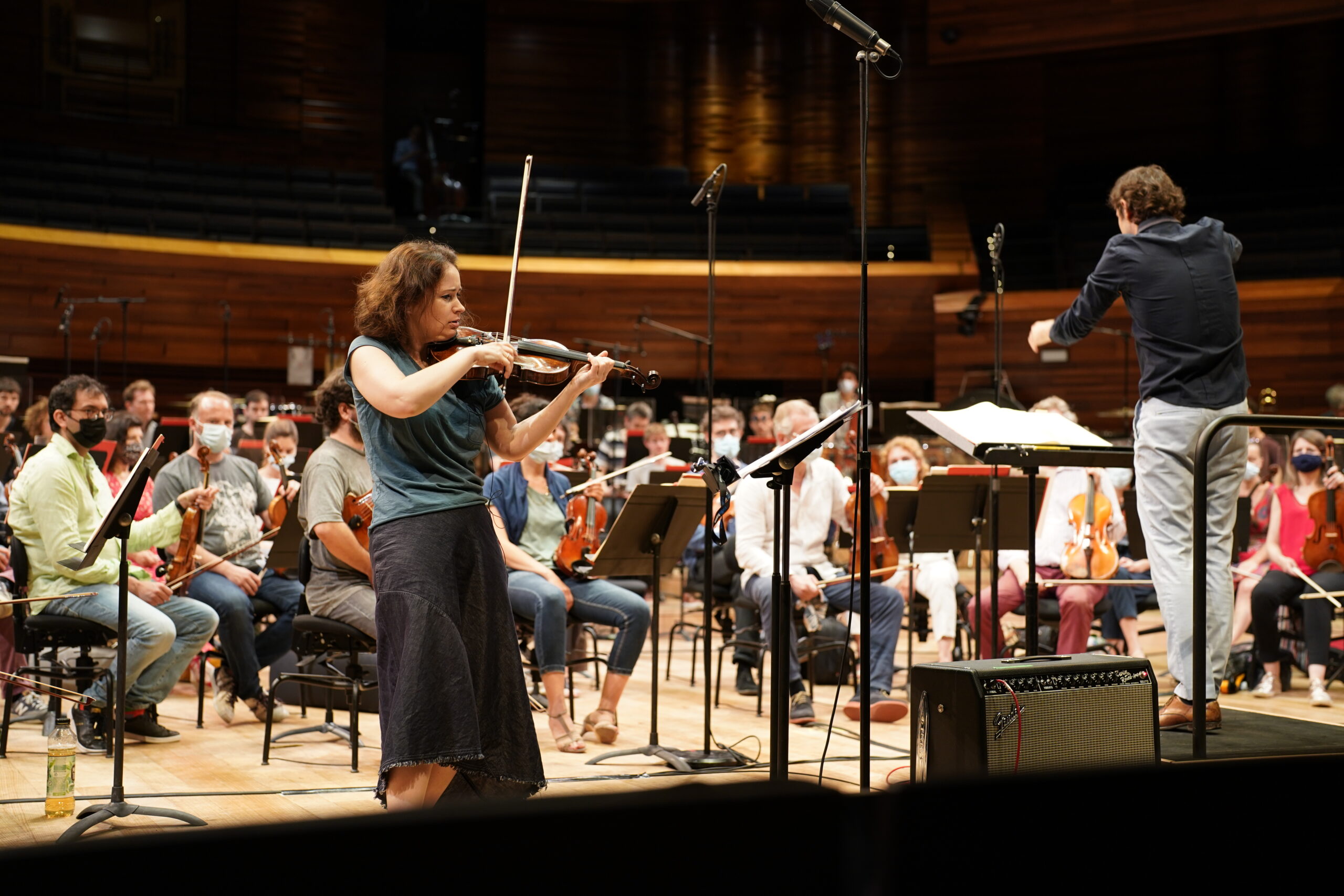 Présent dans la salle, Luca Francesconi expose la première pièce du concert Corpo elettrico. Une œuvre en parfaite adéquation avec la violoniste Patricia Kopatchinskaja, dans le sens où cette artiste cherche à rompre les enclaves de la musique classique, cette création française s'inscrit en miroir de Dead City Radio- Audiodrome, de Fausto Romitelli, donnée en fin de programme.