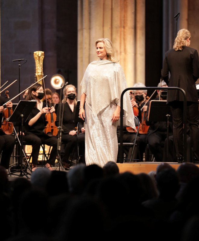 Pour ses débuts au festival de Saint-Denis, Karina Canellakis peine à maitriser totalement l'acoustique particulière, très réverbérante, de la Basilique cathédrale, desservant un programme totalement germanique convoquant Wagner, Brahms et Strauss avec Camilla Nylund en soliste.