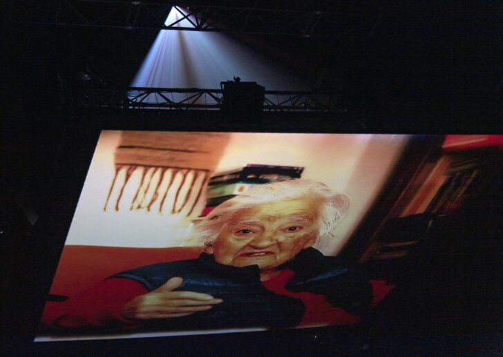 C'est à elle que l'on pense au final, elle à qui Pierre Audi, avant le premier accord, avait demandé de donner le la de la soirée. La première image du ciel-écran la place au dessus de l'humanité. La hauteur de vue de cette pythie à la sagesse infinie et à l'optimisme inentamé (« Même si nous disons parfois des choses pessimistes, l'Art est fondamentalement optimiste »), adresse un vibrant hommage au genre du poème, expression, selon elle, de ce que peut exprimer au-delà les mots (à l'instar de la peinture, de la sculpture, de la musique) une pensée à son meilleur. Elle rappelle la prescience qu'elle a eue dès le début que le conflit israëlo-palestinien allait s'étendre par-delà la Méditerranée. Elle affirme aussi combien il est devenu une mythologie. Et c'est, à l'issue d'une soirée aussi enrichissante qu'éprouvante, cette voix, la voix d'Etel Adnan, que l'on emporte avec soi dans le stupéfiant concert de grenouilles donné à la nuit tombée dans les bassins de la friche industrielle de Luma Arles. Une vraie rencontre.