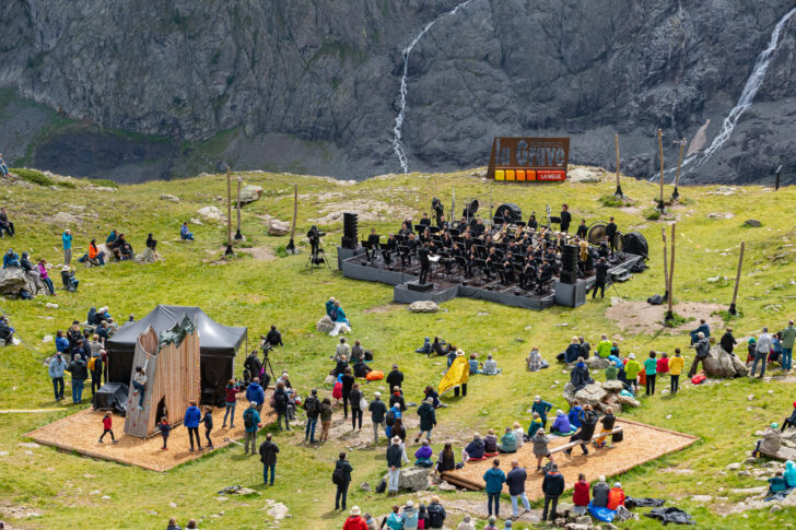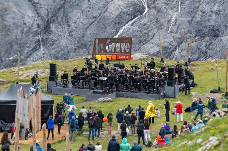 Mission risquée pour l'orchestre Le Balcon et son chef Maxime Pascal qui se sont hissés à 2 400 mètres pour faire résonner en plein air et face au glacier de la Meije Et expecto resurrectionem mortuorum comme l'avait rêvé le compositeur de La Grave.