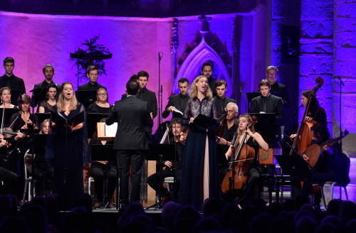 De Venise à Versailles, tel est le titre du concert proposé par l'ensemble Les Ombres. Au programme, Vivaldi et Gervais. Tous les festivaliers connaissent Vivaldi, bien sûr, mais beaucoup ont découvert Charles-Hubert Gervais. Surintendant et maître de musique à la Chapelle Royale de Versailles sous Louis XV, il a écrit nombre de motets. Margaux Blanchard et Sylvain Sartre, co-directeurs de l'ensemble Les Ombres ont proposé quatre grands motets. Dès le quia illic interrogaverunt du Super flumina babilonis, le timbre superbe de Nicholas Scott se fait entendre jusqu'au fond de l'abbaye. On le retrouvera dans son discours très clair lors du Filia Babilonis misera. Le début du Jubilate Deo permet aux deux dessus de se mettre en valeur. Marie Perbost se régale et jubile ! Le Laudate final est magnifique. Les voix du Chœur du Concert Spirituel sont belles, le tempo est vif. Benoît Arnould fait peser la tristesse, la lourdeur du texte du début du Miserere. On retrouve la voix expressive et puissante de Marie Perbost dans l'Asperges me Domine puis, rejointe par Deborah Cachet et Nicholas Scott, ils chantent un beau trio Auditui meo. Saluons la très bonne direction de Sylvain Sartre.