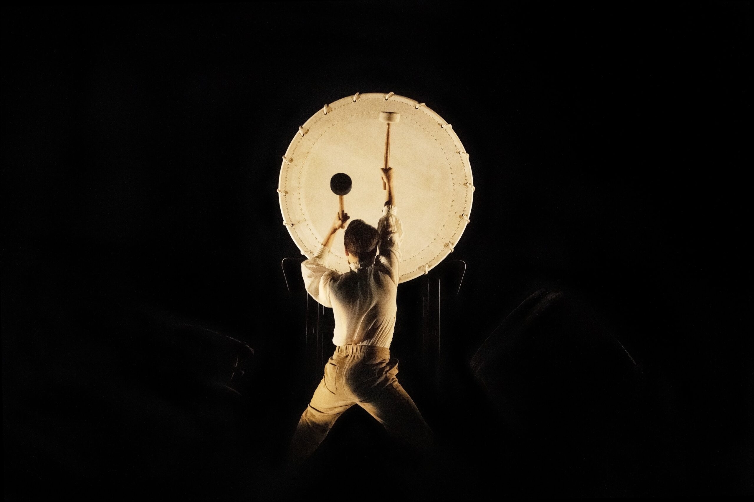 Son apparente simplicité est une affirmation de soi. Cheveux courts, chemisier blanc et pantalon de toile beige, la jeune femme sans apprêts dégage un charme évident. Celui-ci contraste avec l'extrême maîtrise dont elle fait preuve en jouant de multiples instruments orientaux, à commencer par un imposant tambour japonais. Le son enveloppe la scène et bientôt toute la salle. Les basses résonnent avec régularité. Le dialogue s'installe entre la musicienne et la danseuse, deux facettes d'une même personnalité.