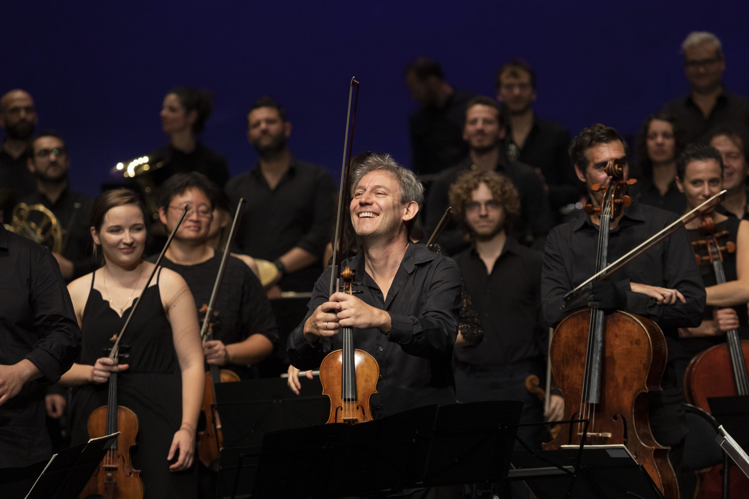 Programmer, juste après l'annonce d'un concours sans lauréat, un concert sans chef d'orchestre ne manque pas de piquant. Pas de chef pour souligner tel détail, tel climax, pour focaliser le regard : à l'affût des connivences, à la recherche des têtes de pont, et seul lui aussi face à la musique, l'intelligence de l'auditeur ne chôme pas. Récemment commenté dans nos colonnes, le programme donné à Bucarest puis à La Philharmonie, est des plus ambitieux. La structure compte dans ses membres nombre de solistes de renom : on repère le Trio Metral, le Quatuor Hermès. Une merveilleuse « introduction » (la Suite n°2 de Daphnis et Chloé). La séduction immédiate du Caprice Roumain d'Enesco via la virtuosité et le charisme de David Grimal, qui n'avait pas prévu de bis mais croit pouvoir se souvenir de la redoutable Ballade d'Ysaye ! Un Sacre du Printemps ébouriffant, ivre de détails. Les rappels cueillant chacune des pièces célèbrent ce concert mémorable, que David Grimal conclut de quelques mots destinés à narrer la façon dont l'ensemble qu'il a fondé en 2004 vient d'être remercié, après douze années de résidence sous l'ère Joyeux, par la nouvelle direction de l'Opéra de Dijon, décision dont la soudaineté, précise-t'il, est à même de mettre en péril une aventure hors-norme.