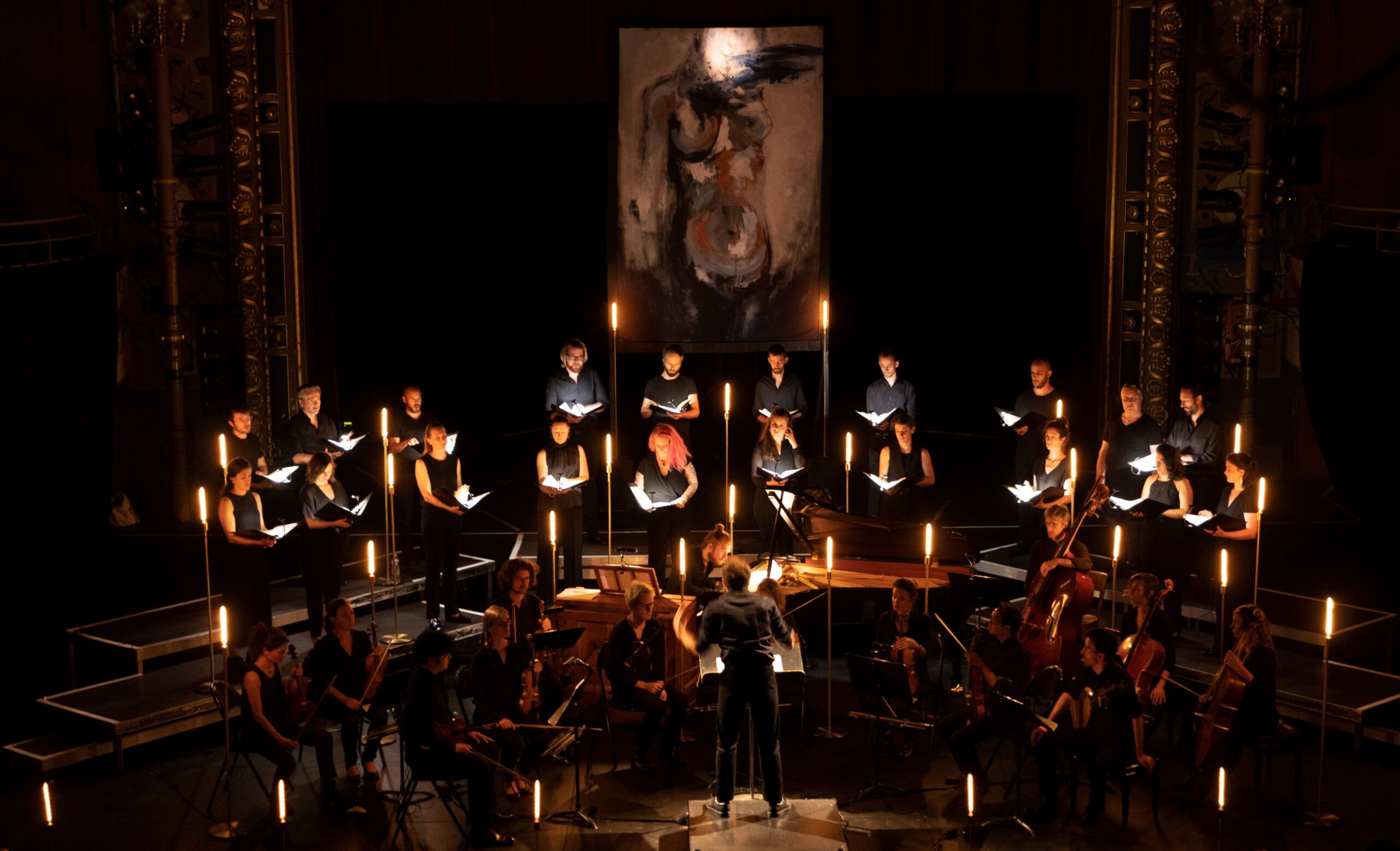 Nouvel avis de Tempête sur Besançon. Simon-Pierre Bestion, adulé ici depuis sa prime apparition de 2018, revient en mini-résidence : le fondateur de La Tempête prête ses chanteurs à la demi-finale oratorio, redonne, dans une version peaufinée, ses Vêpres de Rachmaninov et crée Stabat Mater, sa nouvelle « expérience émotionnelle » (souligne Jean-Michel Mathé, directeur du festival), voire sensorielle, et donc, comme les précédentes, aux confins des toutes les règles édictées. Et c'est une nouvelle réussite qui va droit au cœur. Transformant le Kursaal de Besançon en chapelle ardente au moyen de cierges luminescents posés au pied d'une toile due à Albane de Labarthe, très baconienne dans sa représentation de la maternité crucifiée entre extase et souffrance, Simon-Pierre Bestion entremêle deux Stabat Mater, celui de Scarlatti (1724) et celui de Dvořak (1877). Au motif que l'un et l'autre compositeur ont eu des pères à la forte personnalité, ont vécu des deuils majeurs, ont composé dans la même tonalité leur Stabat Mater au même âge (34 ans), le chef de La Tempête imagine dans le Tchèque la réincarnation, à 150 années de distance, de l'Italien. Introduites en douceur par l'intimité d'un seul théorbe vite rejoint par un piano (la première version du Dvořák était pianistique) un positif (le même instrumentiste passe de l'un à l'autre) et une flopée de cordes, spatialisées comme pour Rachmaninov et Monteverdi (les chanteurs se confient même à l'oreille de l'auditeur), caressées par un jeu d'orgues recueilli, sculptées par la geste d'un artisan qui joue sa vie, les deux œuvres s'enchaînent admirablement, arrachant des larmes à plusieurs reprises. Le quatuor de solistes naît du chœur. Une intense soirée, que les prochaines dates poliront encore, et à laquelle on ne reprochera que l'absence du numéro 6 de Dvořak: ce Fac me vere tecum flere qui a fait pénétrer plus d'un novice dans la beauté de cette œuvre déchirante.