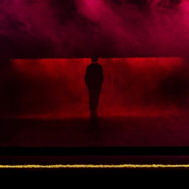 Immersive elle aussi mais beaucoup moins ambitieuse, Rothko,untitled #2 produit par le TNS est l'œuvre de la plasticienne et actrice Claire Ingrid Cottanceau et du compositeur/guitariste Olivier Mellano. La conception épurée semble lointainement inspirée du Rothko Chapel de Morton Feldman (pour alto, ensemble vocal et percussion) sans parvenir à cette intense transfert d'inspiration qui relie la toile à la performance scénique chez l'Américain. Le spectacle son et lumières (celles de Fabrice Le Fur) est monté autour du Poème de la chapelle Rothko de John Taggart, traduit par Pierre Alféri et Emmanuel Hocquard. Il est dit par Claire Ingrid Cottanceau dont la manière litanique et répétitive – « Rouge condensé par noir rouge rendu / dense par noir » – s'inscrit sur les nappes sonores très réverbérées de la guitare électrique dans un espace sombre filtrant les couleurs dominantes du célèbre tableau. Mais ni les interventions de la danseuse (Akiko Hasegawa) ni celle du trio vocal (les « voix imaginaires » d'Adèle Carlier, Isabelle Deproit et Christophe Gires) dont la polyphonie étrange a été réalisée « quasi mathématiquement », confie Mellano, ne parviennent véritablement à créer ce lien organique pour relier les mondes de la peinture, du texte et de la musique dans un espace de représentation où l'on finit par s'ennuyer.