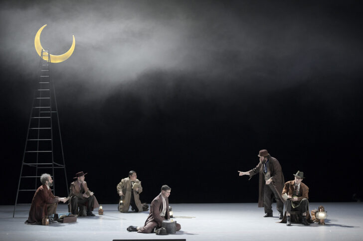 La mise en scène, coproduite avec l'Opéra de Montpellier où elle a été créée en 2019, n'avait pas convaincu notre confrère ; le constat est le même sur la vaste scène du Deutsche Oper. La grisaille généralisée et la facilité des fumigènes ne sont pas de très bon augure au lever du rideau, et les choses ne s'améliorent guère au cours de la soirée. À défaut de donner un sens à la comédie matrimoniale du quatuor des Athéniens, Ted Huffman aurait au moins pu régler l'action avec un peu plus de vivacité et d'action, quitte à nous emmener Au théâtre ce soir ; mais les choses sont trop imprécises, le tempo trop mal maîtrisé pour ne pas nuire à ces scènes. Les choses sont un peu moins négatives pour le Pyrame et Thisbé final, efficacement comique, avec ces marionnettes plus grandes que nature, qui parviennent à donner même un peu d'émotion comique, mais cela ne suffit pas à racheter la pauvreté des deux heures qui précèdent. Déguiser Tytania en homme, avec moustache et haut de forme, pourquoi pas, mais si Huffman choisit ainsi de mettre le thème du genre sur la table, il faudrait le traiter en profondeur, au lieu de se contenter de l'effleurer – Tytania révèle sa féminité sous-jacente dans la scène avec l'âne Bottom, mais c'est bien peu de choses.