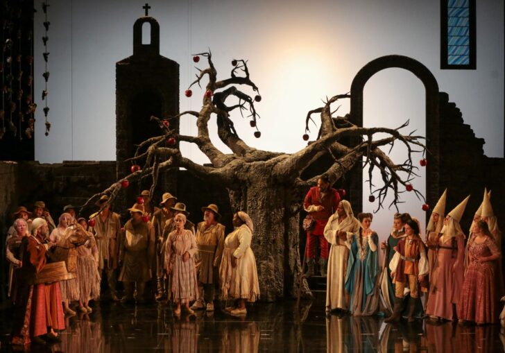 Point de réécriture postmoderne ou de transposition anachronique pour cette proposition très « premier degré » du Comte Ory. La mise en scène de Sylvie Laligne assume crânement le Moyen-Âge de pacotille dans lequel se situe l'intrigue de l'ouvrage, multipliant gags, canulars et actions farcesques : les montures en bois avides de fourrage, les chapeaux coniques des femmes distributeurs de mouchoirs en papier, les caresses intimes qui déclenchent les rires de l'assistance, autant d'ingrédients qui assurent le plaisir et la bonne humeur garants du succès de la soirée. Point de discours moralisateur dans le sous-texte à l'encontre d'un prédateur sexuel qui pourrait nous rappeler certaines histoires contemporaines plus ou moins récentes… Le parti pris est clairement d'assumer la vitalité et la verve d'une œuvre qu'il serait absurde, on en convient, de priver de son irrésistible drôlerie. Dans cet univers loufoque, la figure du comte Ory émerge sous ses aspects les plus enchanteurs et les plus charismatiques. Le second degré s'installe néanmoins quand il s'agit d'aborder l'auto-parodie et de rire des conventions du genre de l'opéra, notamment dans le traitement de la vocalité. Les chanteurs se prêtent de bon gré au jeu de l'auto-dérision, n'hésitant pas à se mettre en danger pour servir les intentions de la mise en scène.